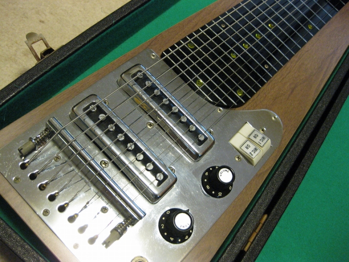 | Teisco 8 String Steel Guitar 60's made I like the steel Guitar specially made by Teisco and Guyatone. I keep several units for myself. Anyway, this is rare 8 strings Steel guitar. We could see the 6 strings type here. If you are looking for the vintage steel guitrar, this should be good. The electric circuits have a bit noise. However, it could be solved by clean up. I'm going to check it before delivery again. Well, try JV legend guitar! |