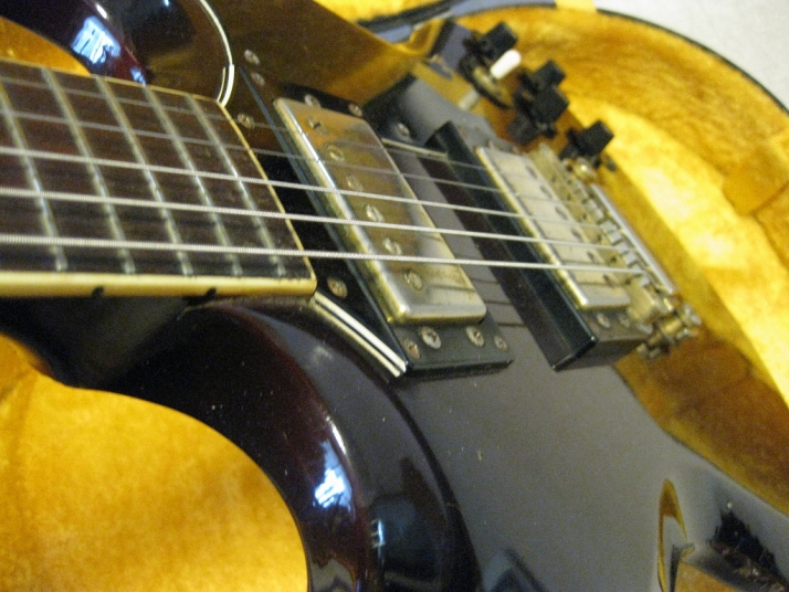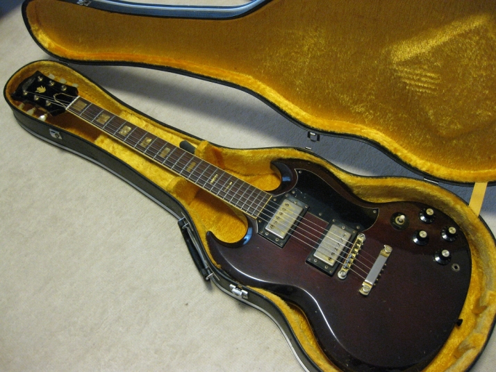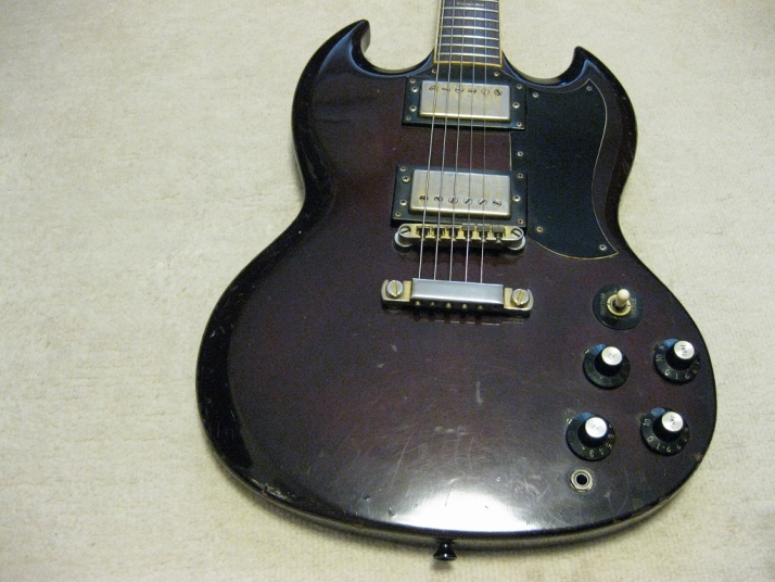 | ELK PT-390 Phantom Guitar ELK is very old Amplifier and guitar manufacturer here. I think they started in 60's. So, they made more antique designed guitar before 70's. ELK products were used by many professional musicians here. I remember their Amp is just like Fender type, It was so expensive for boys. The guitars were pretty expensive too. In 70's they started to produce the several replica guitars such as SG, Fender Tele, ST, PB, JP and etc... This SG is made in 1972 as a first good replica of SG. I have checked this guitar compare with other SG replica. Well, this guitar has already set-neck construction. The PU is also real humbucking type. The metal hardwares should be all original (with gold plated). The sound is a bit hard compare with real SG. However, the neck PU is really warm and good tone. The condition of this guitar is good as over 35 years old. The neck, frets and electric circuits are proper condition (well, this is very old, not like brand new). I have been collecting many 70's made JV guitar. I have another ELK SG. If you are really fan for JV rare brand guitar, this could be your good collection. The guitar will be shipped with70's made used hard case (this is not original) Well, try Japanese JV guitars!!! |