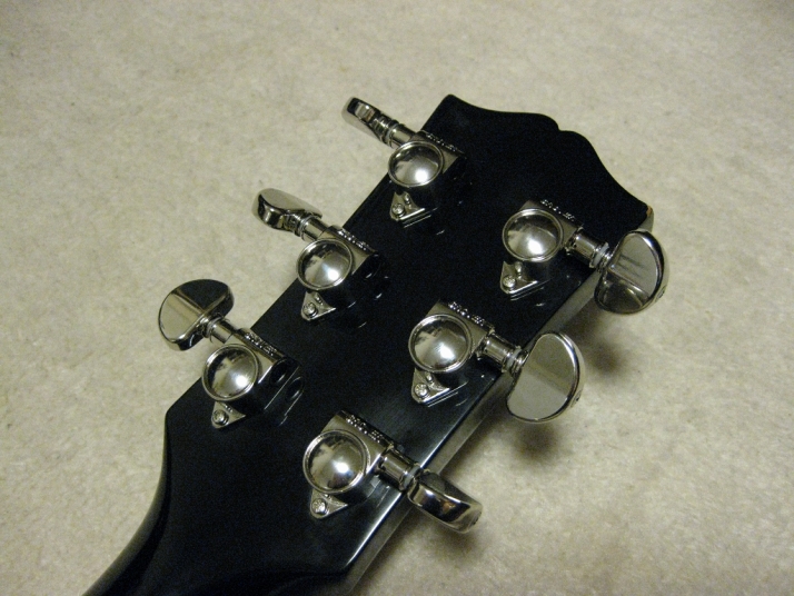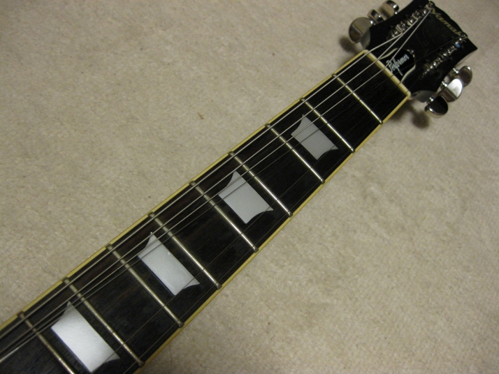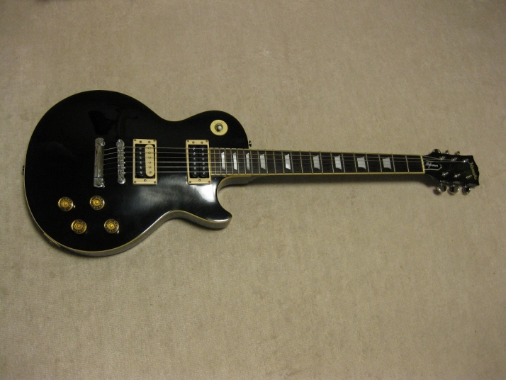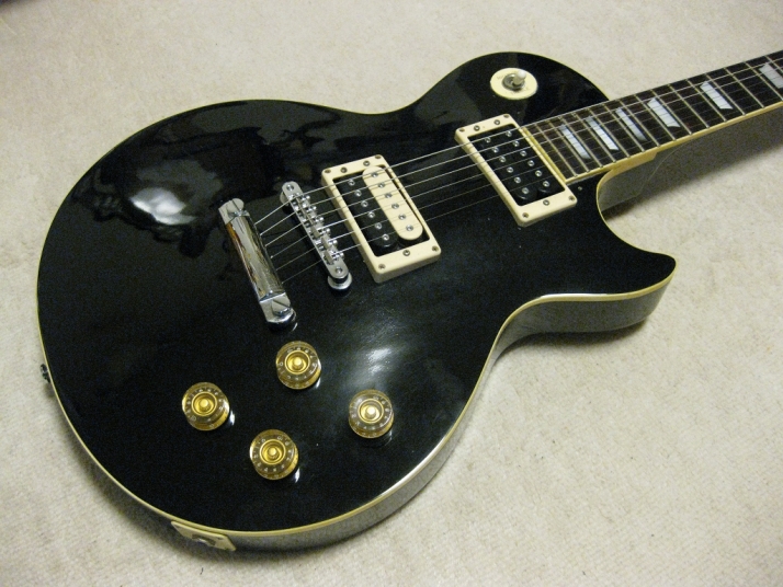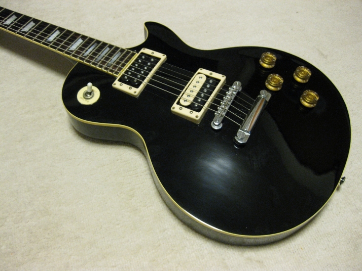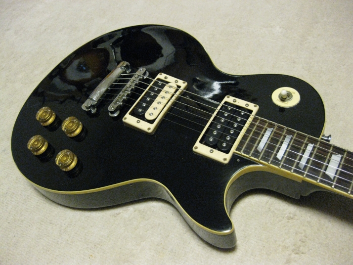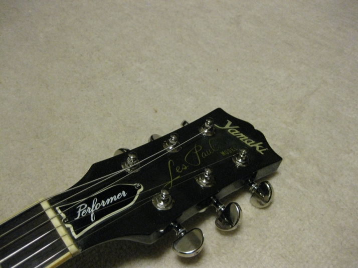 | YAMAKI Les Paul STD model YLP-450B YAMAKI is a good acoustic manufacturer in 1970-80 time. Their guitars were distributed by Dion (whole Seller). They use the "Joodee" name too. But it should be a later production after Dyna Gakki stopped Joodee. I'm not sure why Dyna stopped it. Well, Dyna is currently Fender Japan supplier. Yamaki made many replica guitars. I mainly collect the Strat type. Anyway, this is Yamaki made Les Paul. I think they transferred the good craftsman ship for this guitar from their acoustic guitars experience. According their old catalog, the body material is maple top and maho back. The neck is Nato (Nyatoh) wood instead of Maho. Nato is similar wood with Maho. But they mostly came from Philippines. The body weight is 4.33Kg, therefore, it is typical weight of Les Paul. The sound is Typical Les Paul too. I like it. I only change the tuner from their original (broken) to Grover brand new tuner. Now, the tune could stay well. The body condition is so-so. I could see small paint crack around the neck joint part. It is not effected for wooden part. The outer paint are generally fine. But please note this is over 30 years old guitar. The head clear paint, it became a bit cream (not transparent). Well, good Les Paul model. If you are looking for the Yamaki solid guitar, this is it! We are going to ship this guitar with 70's made hard case shown on picture. |