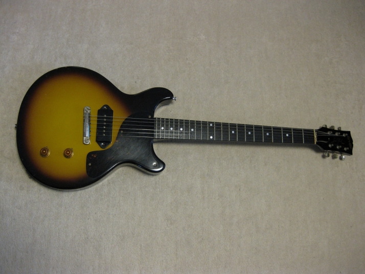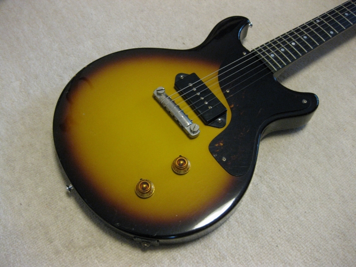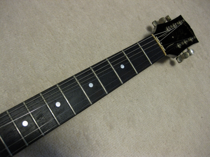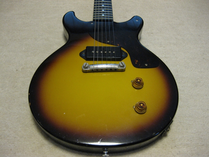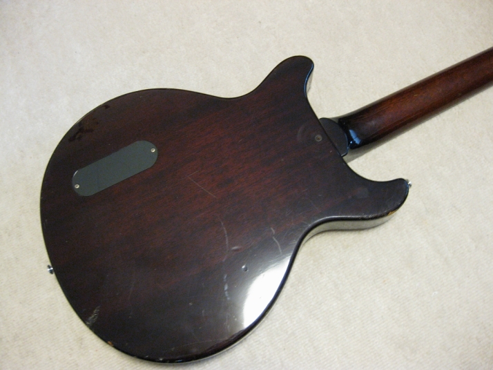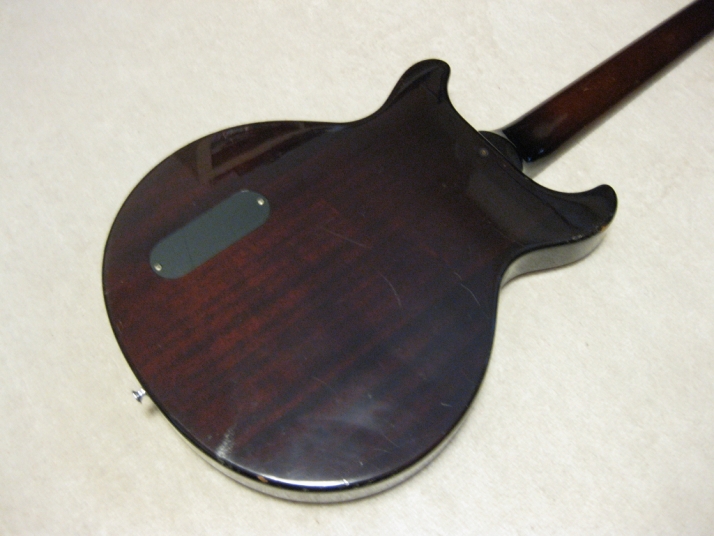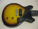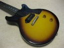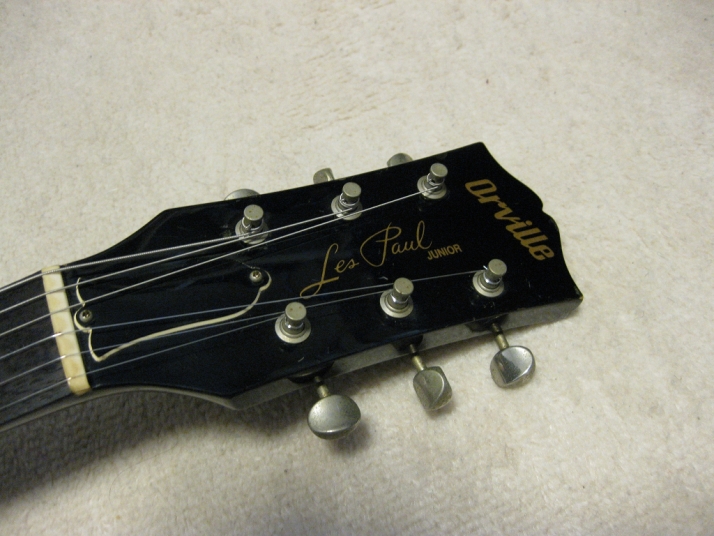 | Orville Fujigen made Les Paul Jr. TV model P-90 Type Pick up guitar is very popular even in Japan. Many people are looking for the Les Paul Jr, TV and Les Paul Special model. Fernandes, Greco, Tokai and other brands made many replica. Orville is only one guitar brand which Gibson U.S.A authorized. This TV was made by Fujigen from serial number. It is pretty good quality. The end users , even guitar shops in Japan said early Orville is absolutely better than current Gibson model. This TV model is proper condition. We could see several small dent the body shown on picture. Probably 1983 made from serial. Of course, the body is Maho (2-3P) with 3.16Kg. Pretty light weight even compare with my other stock before. The neck is Maho 1P. The nut width is 43.7mm. The neck is straight and frets are proper condition (a bit worn, but O.K for playing) The grip of neck is a bit fat like original Gibson. The previous user moved the strap pin from neck end to horn part. I put the new aluminum made strap pin. It is good tone. You could enjoy P-90 sound with this guitar. We will ship this guitar with used gigbag. If you need the hard case, please check other page which we offer. Well, try JV legend guitar! |