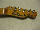 | H.S. Anderson MADCAT HS-1 Many people were talking about this special guitar. I don't know how many original MADCAT were made during 70's. Maybe, most of people knew that H.S. Anderson was conducted by Mr. Hidesato Shiino and distributed and crafted by Morris (Moridaira) started in 1973. Mr. Shiino said that the original design of MADCAT came from the Takahiko Ishikawa who is top guitarist here in Japan (Maybe Mr. Ishikawa played over 10,000 songs...!!! He is mainly playing the acoustic guitar). Anyway, when they have a drinking, Mr. Ishikawa just wrote the original design of MADCAT. A few weeks later, Mr. Shiino added his idea and made the proto type of MADCAT. Well, about Mr. Shiino, you could check my JV history page. The logo mark was designed by Mr. Atsuro Yamada who is currently Managing director of Gramco Ltd - Top Strategic Brand Consulting Company. Mr. Shiino and Mr.Yamada were a good friend, and Mr.Yamada designed the logo mark and even MADCAT illustration. The Morris factory for H.S. Anderson was independent from Morris Acoustic guitar factory in Nagano. I've heard hat 3 craftsmen (Mr.Shinoda, Mr.Imafuku - He is Fujigen manager currently and other craftsman) made H.S. Anderson brand guitars. Early days (1973 -1974) made Madcat hasn't goit the serial numbers and signature in cavity. Later day (after 1975), H.S. Anderson guitars have their signature of these builders somewhere - PU cavity. Of course, Mr. Shiino left already (He established the ESP in 1975). The early time MADCAT is Maple 2P top and Back. The center wood is Sen (Japanese Ash) 2 PLY like pancake construction. This is particular construction of vintage MADCAT. The hardware is almost same between HS-1 and H.S.TE60 (Ash body standard type). However, these are completely different size hardware compare with 80's made MadCat. We call these are all narrow pitch type hardware. The saddles are bit small size compare with 80's. The neck plate too. So, we could recognized only early days MadCat were made by Mr. Shiino's conduction and design. Later production is re-designed by Morris guitars. Well, Mr. shiino started his new brand Vesta Graham, Bossaxe and others a Guitar Shop "PACO" (Mr. Shiino and I restarted the Paco in Tokyo).). He said that the later days Madcats are almost different product. It is very heavy weight. This is 4.37Kg. The nut width is 42 mm. The neck shape of original MadCat is completely different. I have heard that Mr. Shiino instructed it very carefully. So, 80's made Mad cat is quote different neck shape. The center position is phase between neck and bridge PU. I like the tone of MADCAT. I think MADCAT is most famous JV guitar made in 70's. This is original from Telecaster design. But the tone is completely different. We have 2 original MadCats guitars. One is Mr. Shiino's own and it is 1st proto type. This guitar is probably 1st production lot.These 2 guitars are very similar product. Both MadCat are currently at Guitar Salon PACO. Of course, these 2 cats were well maintained. We can see the MADCAT on eBay sometimes. They offered not original MADCAT like USD 1,300-5,000 range. Some of them are Korean made. When you will purchase it, please check it very carefully. Now, we can see the MADCAT replica distributed by Morris here. It is like USD 2,500 range. This is just for your reference when you purchase it! This guitar will be shipped with the certificate of authenticity signed by Mr. Shiino as original guitar. If somebody interested in this historical guitar, just contact us with your offer price.i |