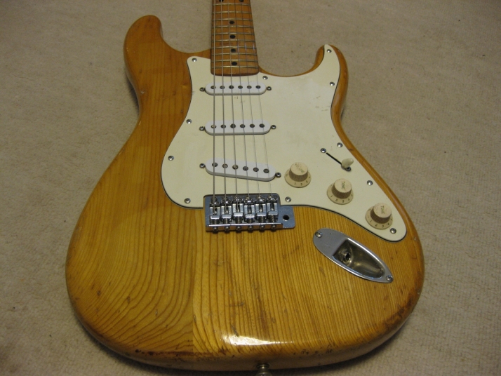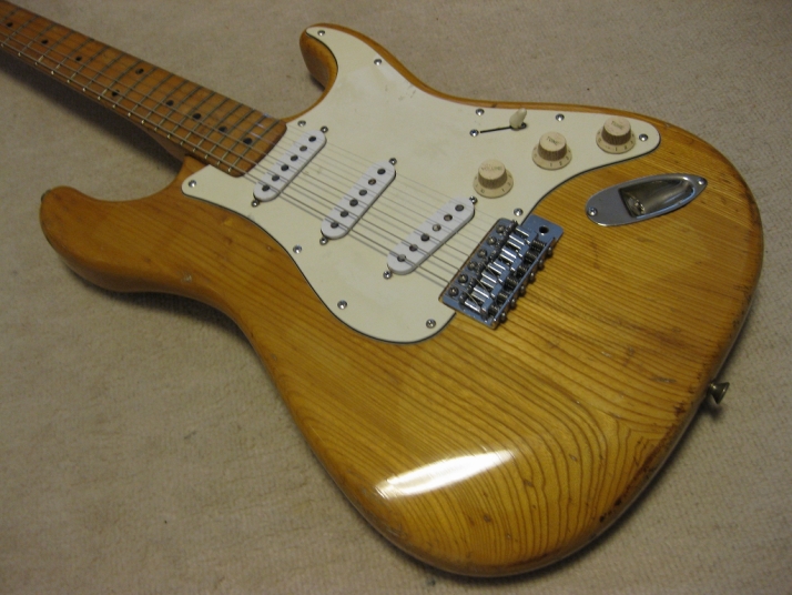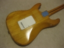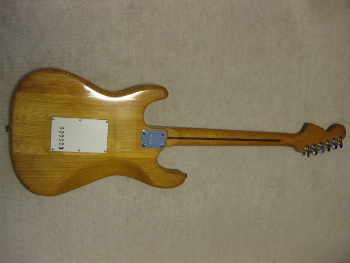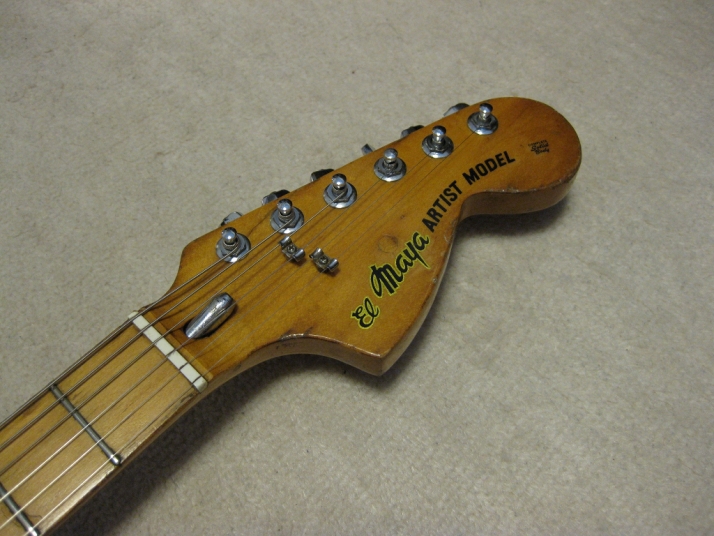 | El Maya Stratocaster SC-36 Model El Maya guitar is one of my favorite JV guitar. It is very good construction. I could say I love "Joodee", "El Maya", "Yamaki" and "John Bennet". I have several El Maya Strat. El Maya has several Logo marks. They have the Artist model and Junior model. AS Artist model, El Maya offer the SCO-36. This model is top model of El Maya Stratocaster. It has the metal pickguard. The electric parts are inch size. These are small head type. They offered SC-36. This is large head model. The Junior series are SC-33 and 35 series. The different between SC-33/35 and 36 is neck construction. 36 type are 1P maple type finger board. 33/35 are bonded maple finger board. The large head replica has the U grip neck like Fender USA late 70's type. Anyway, this is El Maya Artist Large head type Strat. This El Maya has C grip with 41.5 nut width. The neck is fine, but the paint of finger board are partly peel off. The body is probably Sen (Japanese Ash) 3P. The weight is 3.62 Kg The body condition is not good. we could see many dents and scratches. Electric circuits, PU and other parts are all original. Well only out put jack has been changed. I have also changed the all screws around the bridge. Now, these are stainless made. This is not collection guitar. Just play!!! Well, try JV legend guitar! |