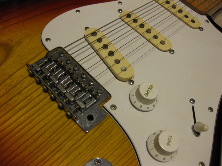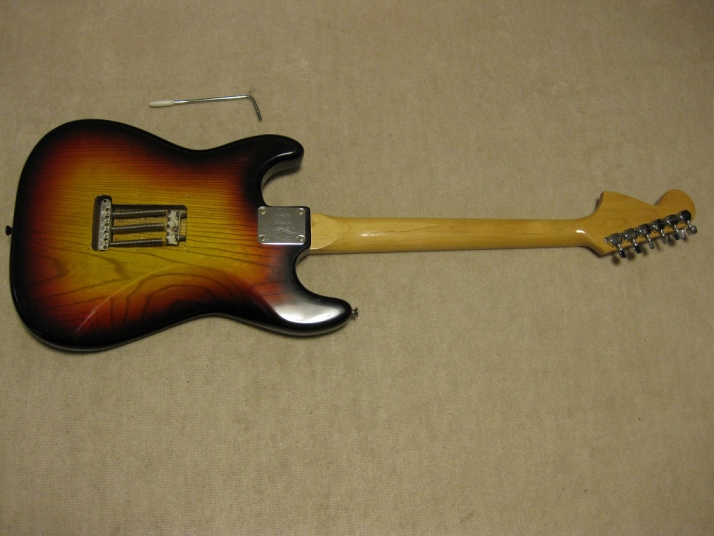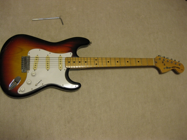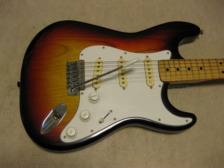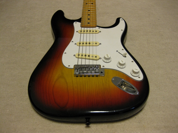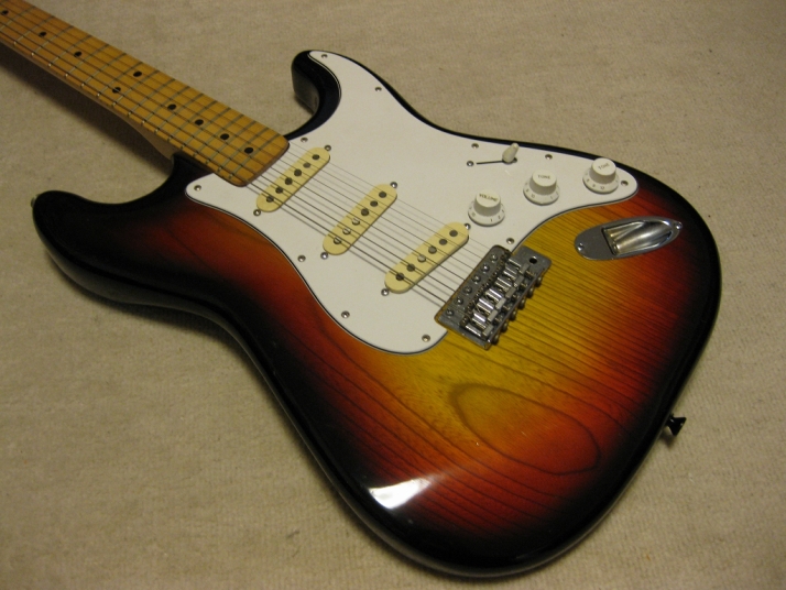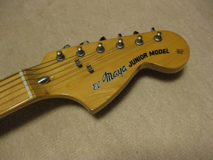 | El Maya Stratocaster SC-33 Model El Maya guitar is one of my favorite JV guitar. It is very good construction. I could say I love "Joodee", "El Maya", "Yamaki" and "John Bennet". I have several El Maya Strat. El Maya has several Logo marks. They have the Artist model and Junior model. AS Artist model, El Maya offer the SCO-36. This model is top model of El Maya Stratocaster. It has the metal pickguard. The electric parts are inch size. These are small head type. They offered SC-36. This is large head model. The Junior series are SC-33 and 35 series. The different between SC-33/35 and 36 is neck construction. 36 type are 1P maple type finger board. 33/35 are bonded maple finger board. The large head replica has the U grip neck like Fender USA late 70's type. Anyway, this is El Maya Jr. Strat. This El Maya has U grip with 40.05 nut width. The neck and frets are fine. The body is probably Sen (Japanese Ash) 3-4P. The weight is 3.73 Kg Electric circuits, PU and other parts are all original. The body condition is good as vintage guitar. Good Condition El Maya Guitar. Well, try JV legend guitar!Maya Stratocaster |