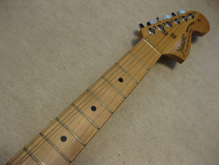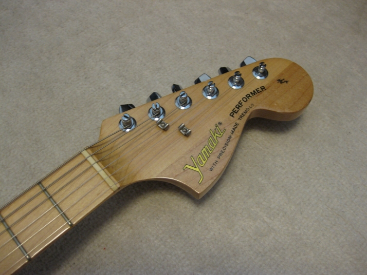 | YAMAKI YST-450 Stratocaster Model If you are a collector of Yamaki Stratocaster, I knew you would like to have both large head an small head. I'm also collecting both of them. This is mint condition Yamaki strat 68 - model. The construction is very good and could feel builders passion! Very regretfully, Yamaki was bankrupted many years ago. So, Yamaki guitars became collection guitars here. All conditions are fine for this guitar. We could see small dents on the body top. This 450 model are cost effective model, therefore, the neck top is 2P with 42.6mm nut width. The body is probably Sen 3P but it looks a bit different. Looks like Maho...The weight of this guitar is 3.65Kg Good tone good playing condition. I'm guessing Yamaki guitar will be much rare in the future. Just enjoy to have a look !!! |