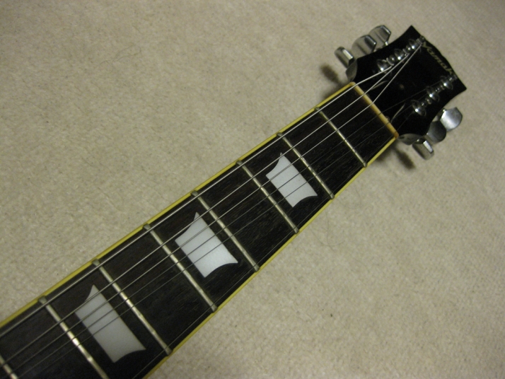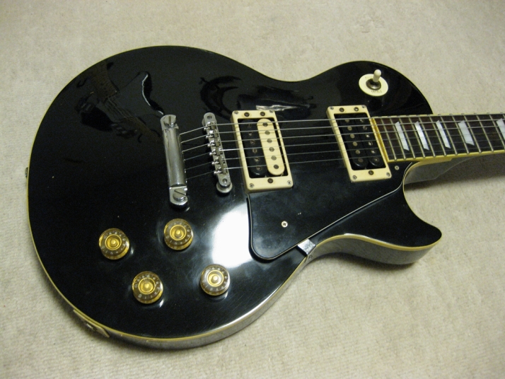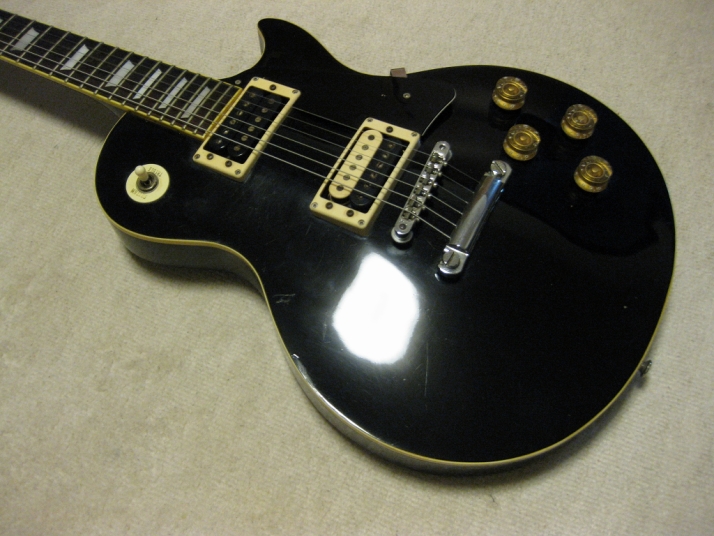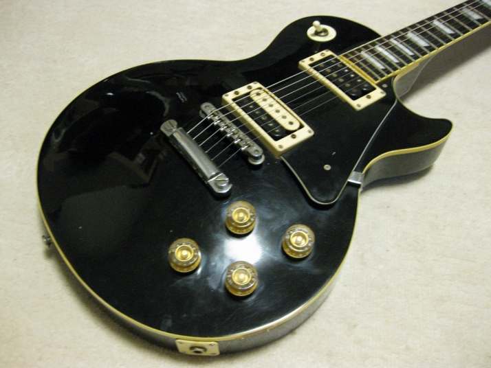 | YAMAKI Les Paul STD model YLP-450B YAMAKI is a good acoustic manufacturer in 1970-80 time. Their guitars were distributed by Dion (whole Seller). They use the "Joodee" name too. But it should be a later production after Dyna Gakki stopped Joodee. I'm not sure why Dyna stopped it. Well, Dyna is currently Fender Japan supplier. Yamaki made many replica guitars. I mainly collect the Strat type. Anyway, this is Yamaki made Les Paul. I think they transferred the good craftsman ship for this guitar from their acoustic guitars experience. According their old catalog, the body material is maple top and maho back. The neck is Nato (Nyatoh) wood instead of Maho. Nato is similar wood with Maho. But they mostly came from Philippines. The body weight is 4.3Kg, therefore, it is typical weight of Les Paul. The sound is of this Les Paul is a but thin tone compare with other my stock, I feel. It maybe came from tuner. This guitar tuner is original. Another stock has the Grover Tuner. I think the weight of tuner made a bit heavy tone compare with original tuner. Pick up is original. Well, this is almost original condition. The body condition is fair as 30 year old guitar. Do not expect beautiful guitar, anyway. The bottom strap pin has been moved and the hole was repaired. Well, it is good JV Les Paul model. If you are looking for the Yamaki solid guitar, this is it! We are going to ship this guitar with used Gig Bag. |