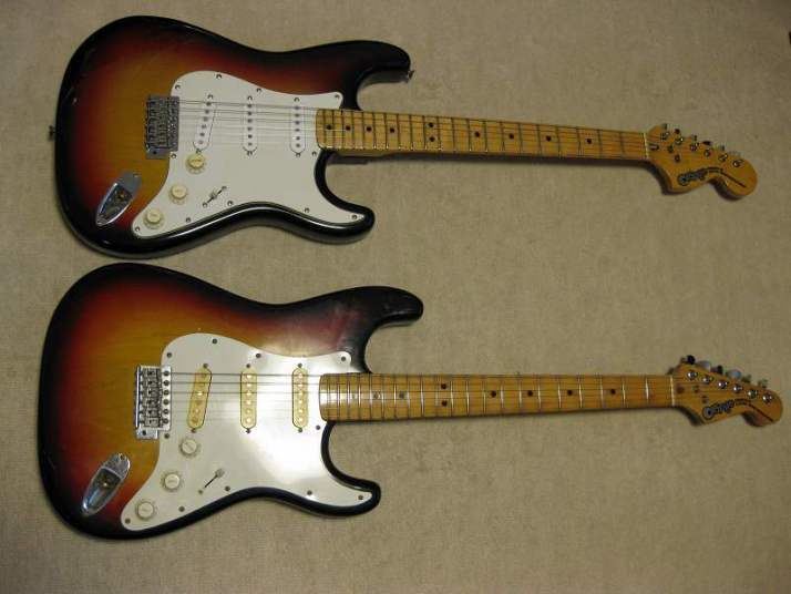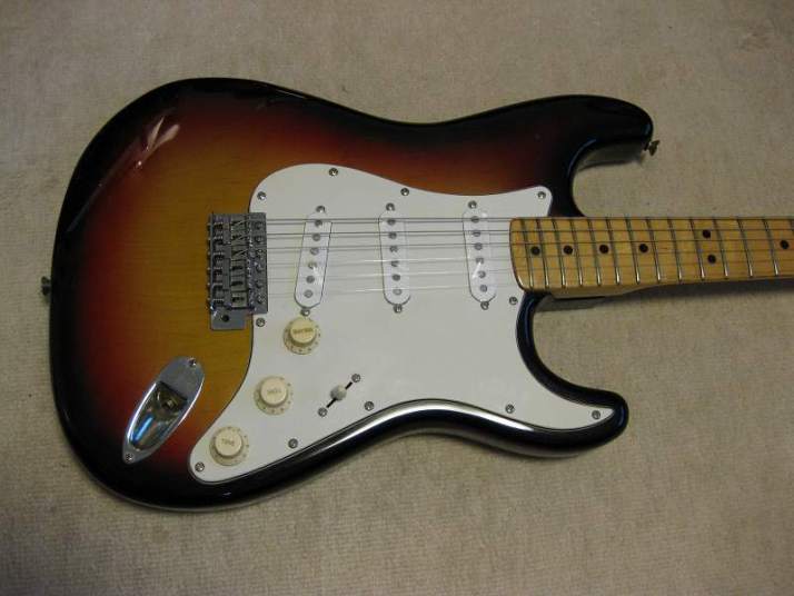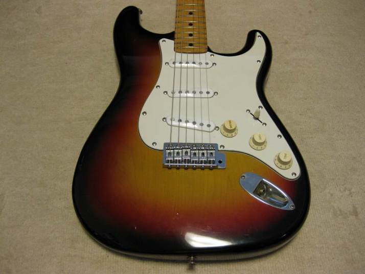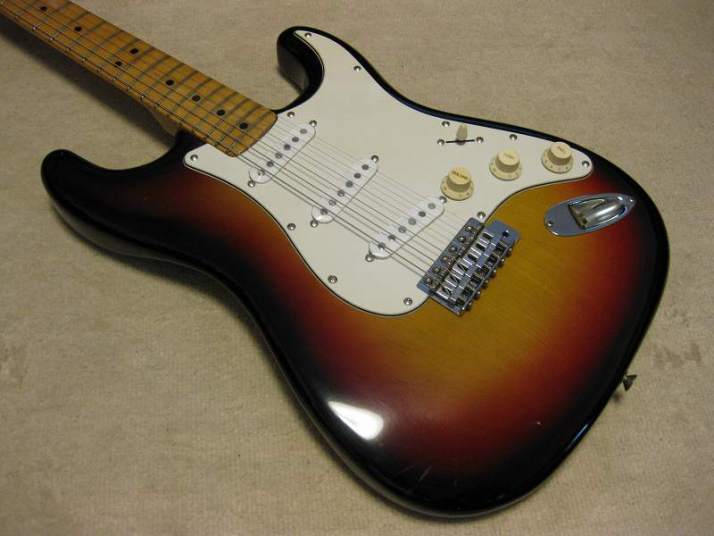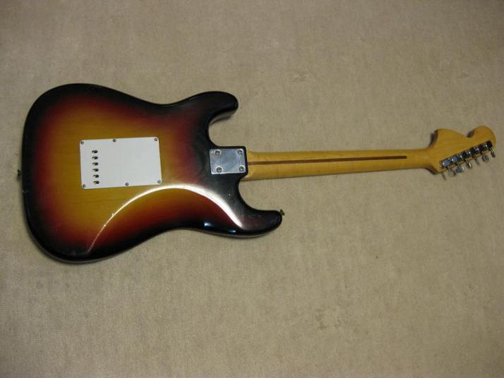 | Orange Stratocaster 68 model This is very rare brand. I have heard that one of Osaka music store made a marketing plan to sell This OEM guitar with Fernandes or Kawai. Probably, they didn't satisfy the replica of Fernandes. Probably this is before Stone Logo FST (tokai made) era. I have check the body construction. It is very similar with Fernandes FTS-70 series. The difference from old Fernandes is the neck finger board. Orange is 1P maple neck. Well, Fernandes 76/77 made FST series have the 1P neck for short period. I had a few, but the specifications are much closed to Tokai made stone logo type. From the catalog information, there were small head (62 model) and large head (68 model), This is large head type like 68 model. The body is probably Sen with 4.34Kg. The neck is Maple 1P, C shaped grip, with 41.3 mm Nut width. Very regretfully, the original PUs were damaged, So, I replaced them to brand New Gotoh pick ups. It is very good tone now! Really good looking as 35 years old guitar. I priced above, but for this guitar, I'm not sure I could sell or not. Just Ask frist! The last picture is showing both small and large head Orange Stratocaster! |