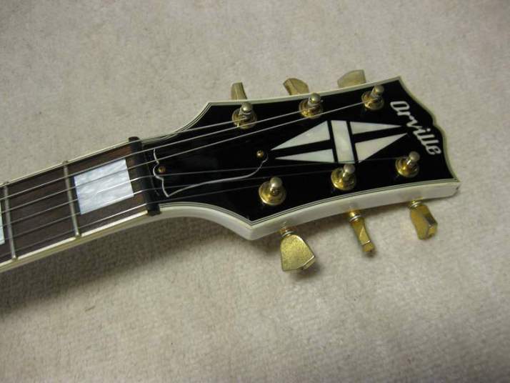 | Orville Les Paul Custom model (Fujigen Made) It is getting tough to find out good condition Orville by Gibson guitar. As you know, Orville was made by 3 manufacturers which are Terada, Fujigen and unknown Korean. The serial started G is Terada. This is early made Orville (has by Gibson). 2nd is Fujigen, Serial has 6 digit numeric with black ink. The Korean made is K serial (Silver color sticker). The constructions are different between 3 manufacturers. This is MIJ Les Paul Custom is made by Fujigen in 1996. It is good condition. It has the deep joint set neck constructions. The neck is straight, Truss-Rod is workable, Frets are proper (bit worn) and electric circuit is fine too. Previous owner maybe changed the nut to TASQ black type and took off the gold PU covers. Also, He changed the Neck PU to Duncan SH-1N/59 and Bridge PU to Duncan SH-5. The sound is so powerful. The body weight is 4.57Kg. Orville catalog said this is Maho body 2-3P and Maho 1P neck with 43.8mm nut width. The hard case is not included. If you would like to get the hard case, please ask us. We could offer brand new Black or Brown case. The price is shown this guitar with used Gigbag. If you will get the hard case, the freight will be up. Please try Japanese Vintage guitar! |