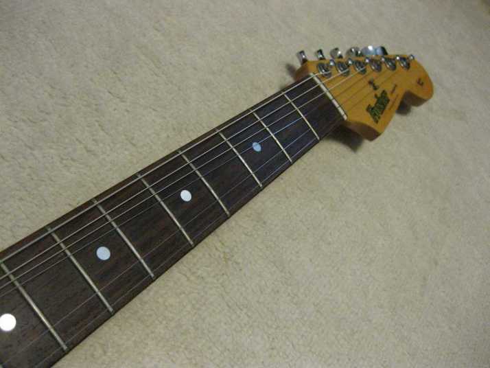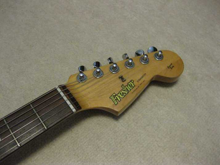 | Fresher Stratocaster 4th Generation This is 4th generation Fresher made by Chushin Gakki. In 1980, Kyowa shokai shifted the supplier to Chushin Gakki completely. As a replica, this Logo time guitar is closed to the original Fender guitars. Kyowa shokai was still targeting the middle class users. Therefore, this guitar was sold cheaper than Greco, Fernandes and Tokai. But absolutely better than Mail-order Guitars. Well, this guitar is really good sound. Personally, I recommend you this guitar. Better than FJ ? It is very hard to comment. Just I could tell you that this is better than your expectation. I didn't change any for this guitar. The body is probably Ash 3-4P with 3.71Kg weight. The neck is Maple 1P (head area 2P) with RFB. They save the cost using 2P neck. The nut width is 41.8mm. The neck is fine, of course, truss rod is working. PU is ferrite type single. If we put the Alnico type, we could better tone. It is pretty good quality replica. You could enjoy this guitar well as F Killer. The guitar will be shipped with Gigbag (not original used) Addtional Info. : Kyowa Shoka was bankrupted in May, 2011. No more Frehser guitars even new products. |