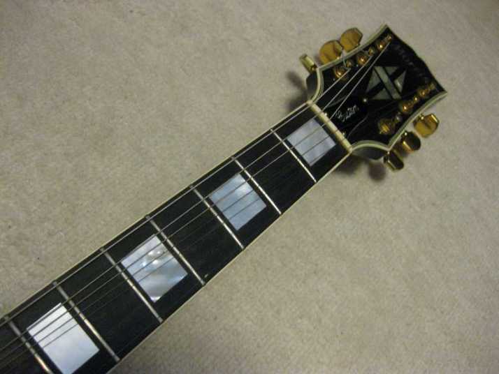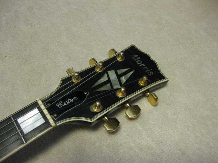 | Morris Les Paul CTM Model This is proper condition Morris Las Paul CTM Model. It should be produced after they started H.S.Anderson guitar. After H.S.Anderson, Morris changed the electric guitars line completely. I never seen the catalog, but These guitars are much detailed and good construction replica. Before, H.S. Anderson, Morris electric guitar were mostly plywood body. These were very cheap looking. Gibson type model were all bolt on neck. Well, this Les Paul is set in neck type, same with H.S.Anderson. I guess the builder should be same with H.S.Anderson team. I don't have intention to sell this guitar. This is very rare. 1) Gold Plated PU with MORRIS logo 2) Shaller Tuner (This is absolutely same spec with H.S. Anderson) 3) Sold Mahogany body 4) All Real Shell Inlay It is pretty good condition too. The weight is 4.24 Kg The nut Width is 43.55mm Only the problem is Neck PU is not working now. I will rewind it in near future. The picture hasn't got back panel. I took off to check the wiring. But It is installed. |