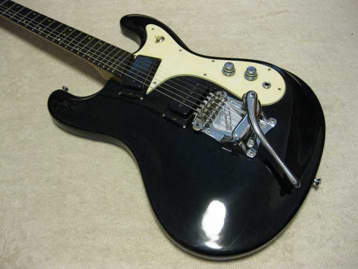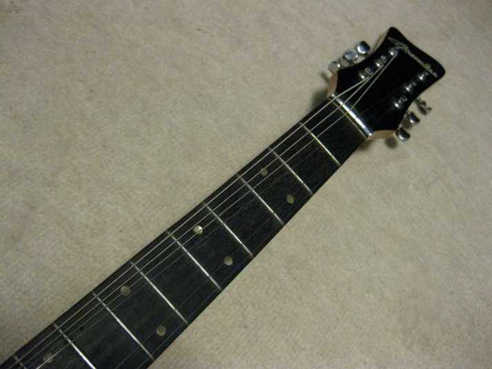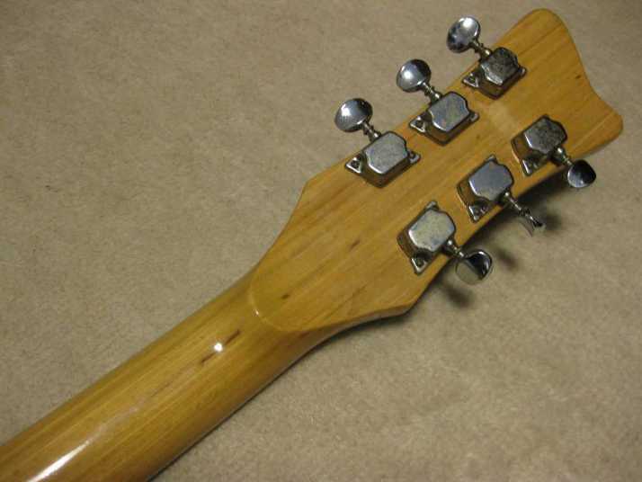 | Moraless Zenon ZES-300 Moslite Model I'm not a generation who played Ventures so much. But they are my favorite sound. However, I didn't pay attention so much about the Moslite guitar and its replica. I got this guitar recently. I didn't expect good tone... Well, my impression was changed completely now. It is very good clean tone guitar. The tremolo unit gave me the Ventures sound. The neck is straight. Truss rod is working. Frets are proper condition. I don't know the wood materials. The body is solid wood. But I could not specify what it is. The electric circuit was damaged. I have changed all. Now, Gotoh Potentiometers, Switchcraft selector and output jack were used. It is very seldom to see the good condition Moraless. Try to play this guitar! |