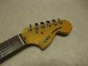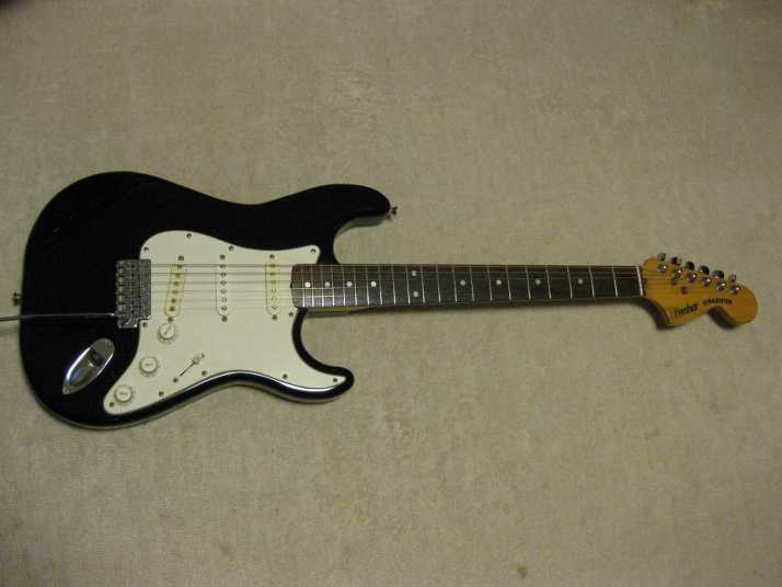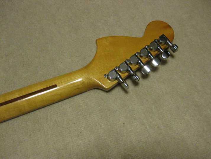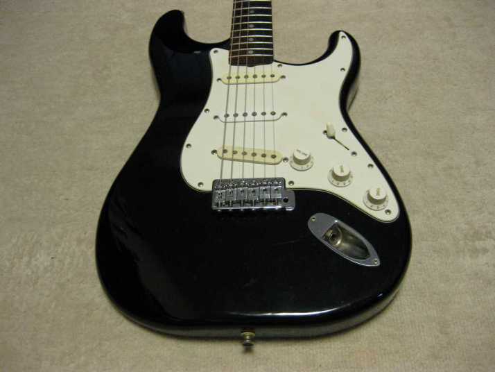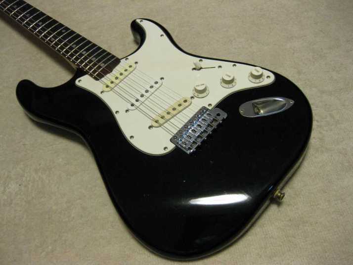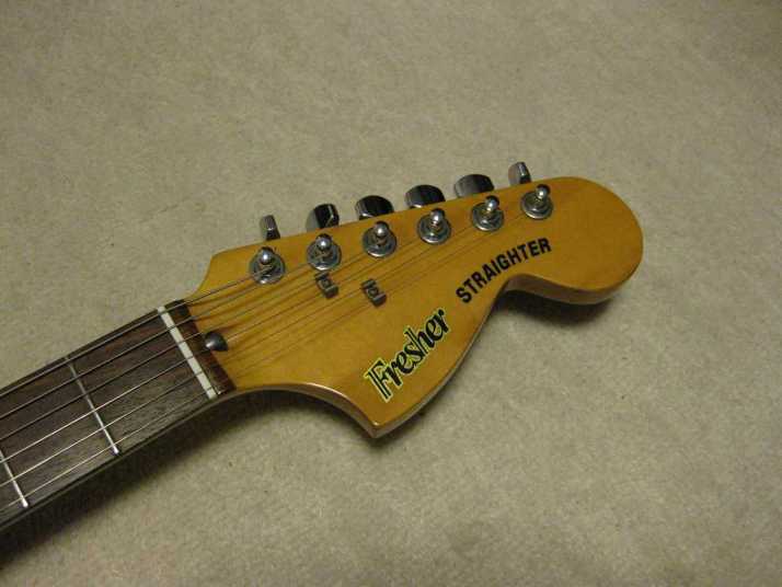 | Fresher Stratocaster 4th Generation This is 4th generation Fresher made by Chushin Gakki. In 1980, Kyowa shokai shifted the supplier to Chushin Gakki completely. As a replica, this Logo time guitar is closed to the original Fender guitars. Kyowa shokai was still targeting the middle class users. Therefore, this guitar was sold cheaper than Greco, Fernandes and Tokai. But absolutely better than Mail-order Guitars. Well, this guitar is really good sound. Personally, I recommend you this guitar. Better than FJ ? It is very hard to comment. Just I could tell you that this is better than your expectation. I didn't changed the parts myself. It should be original condition. The body is probably Ash (Japanese Ash - Sen) 3-4P with 3.81Kg weight. The neck is Maple 1P with RFB (round board), of course, truss rod is working. The nut width is 41.8mm. This model has the large head. The condition of body is not really good. You could see some dents on the picture. It is pretty good quality replica. You could enjoy this guitar well as F Killer. The guitar will be shipped with Gigbag (not original used) |