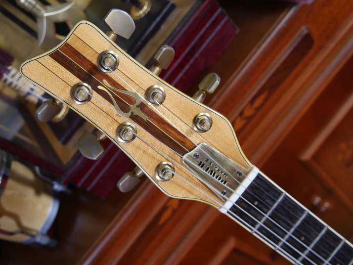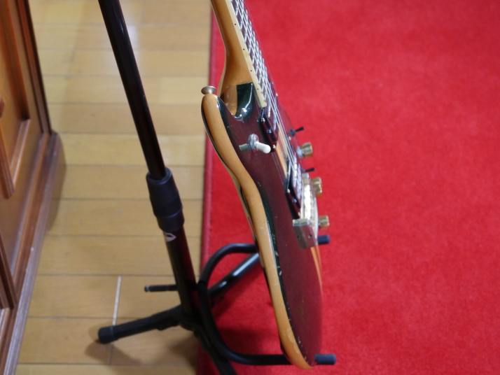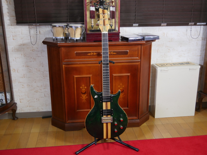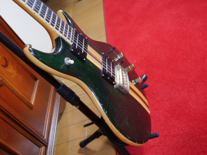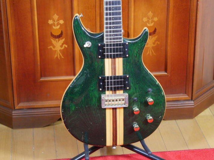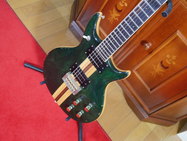 | Yamaki Daion Power Mark XX Yamaki is a famous acoustic guitar manufacturer. Many people here is looking for Yamaki made acoustic. They made this series for mainly overseas market, Cos I didn't know this model by the time I got. Though Interned, I saw many collectors for this series, more than Japanese market. I got this guitar about 10 years ago. I just keep it in the box for many years. About Yamaki, you could read some more on this WEB page. This guitar is very compact and thin body. The body surface is so smooth. I didn't see like this design before. I have changed the PUs to JBE humbuckers. Well, I'm a Japanese Distributor of JBE, so I tried to use it. This guitar has 2 mini switch, so, this guitar has pretty good single tone and humbucking tone now. JBE is so clear and noiseless pick up. I love the tone pretty much. I change the pot (CTS), switch and jack is switch craft. The neck is pretty good size like Strat shape. Well, I do not have an strong intention to sell. Just keep it here, Maybe many years later, my sons will consider how to do. |
