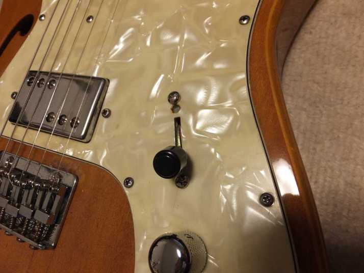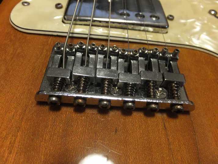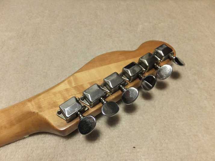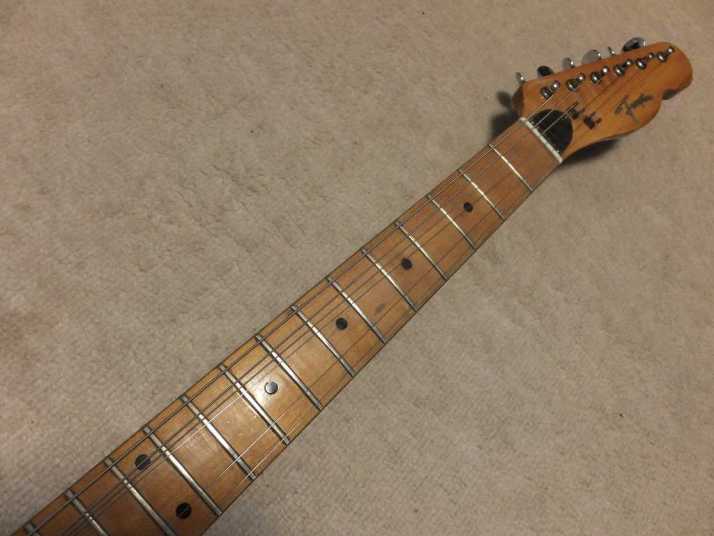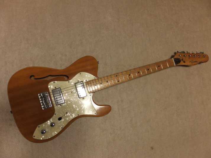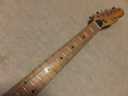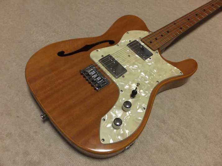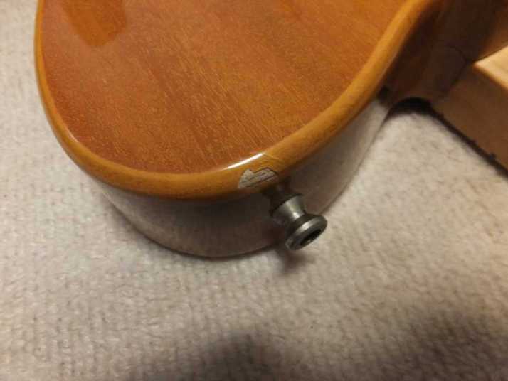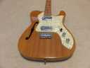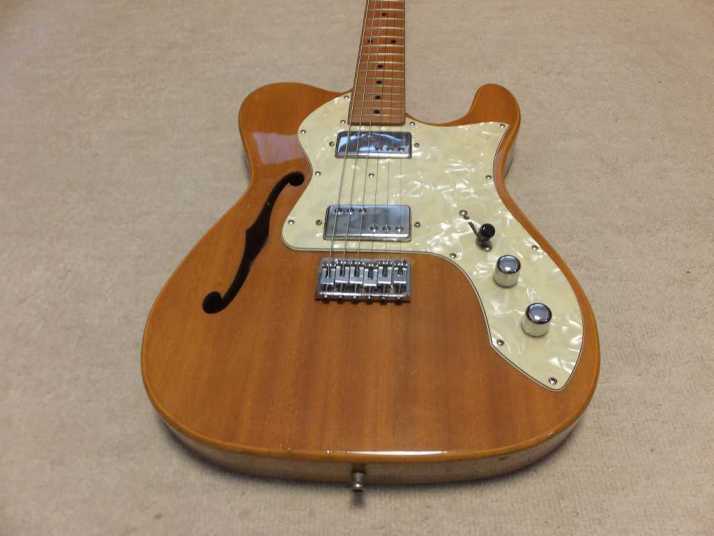 | Frampton Telecaster Thinline Model This brand was distributed by Aria (Pearl Gakki ?) here. Made by Matsumoku. I'm not sure Frampton brand detailed. I think the sales must be very poor. Well, this guitar is probably made by Matsumoku. The construction is alsmot same with early time Greco Matsumoku made Tele Thinline guitar model. The body is made by many piece of wood like pancake construction. The top is, of course, PLY wood. The neck is 3P by Maple. The nut is like Gibson type (41.7 mm width). Well, it is not really good Fender Replica, but it has enough value for telling the history. The weight is 3.66 Kg. PU should be original. But the selector switch was replaced by previous owner. The Top wood has a bit crack. For me, it is very good looking, anyway. This is not great condition guitar, anyway. However, it is exactly history teller. Pretty intresting JV guitar! |