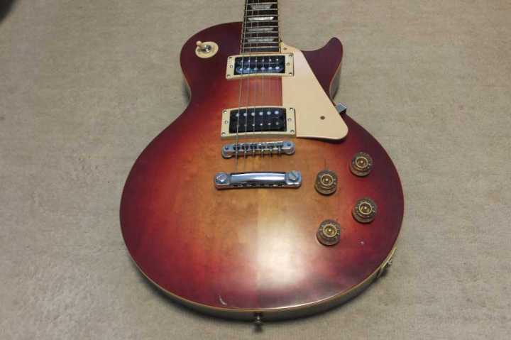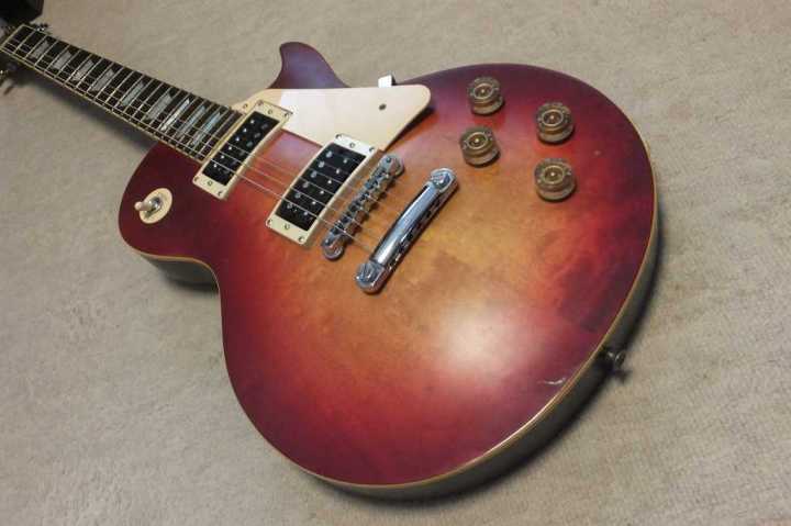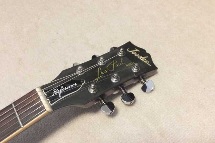 | Joodee Les Paul Model (Yamaki made) JLP-800CS The Manufacturer should be Yamaki Gakki. It should be late 70's made. Joodee guitar was made by both Yamaki and Dyna gakki. This logo mark is probably made by Yamaki. I have checked old Yamaki catalog. It should be JLP-800CS. The body paint is very thin like lacquer painted. There are not many scratches. but we could see small one on the top. The original PU was damaged. I have changed the PU to Gotoh HB-EW-Alinico 5 which we designed and made with Gotoh recently. You could check this pickup detailed on our WEB. At the same time, I have changed the all pod, switch (Switchcraft) and Jack (Switchcraft) The wire is mainly Belden. The condition of this guitar is generally fine. The neck (1P Maho, Head 3P) and frets are proper condition. Nut width is 43.5 mm. The body is probably Maho 2Ply solid Maho (maybe 2-3P, Top is Maple 2P with 4.3Kg. It is pretty good tone. Gotoh Alinico 5 PU are really sweet tone. I bought this guitar for modification purpose to be Jimmy page circuit. But, I don't have enough time to do. If you are looking for the good condition JV LP, I could recommend this guitar. Good era's great guitar |