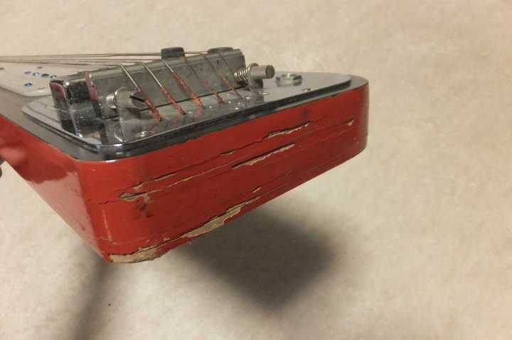 | Teisco 6 String Steel Guitar 60's made I like the steel Guitar specially made by Teisco and Guyatone. I keep several units for myself. Anyway, this is 6 strings Steel guitar. Generally, condition is fine, but body side, it has the paint cracks. It should be fine for playing. If you really hate it, please paint it by your favorite color. I offered this steel guitar at bottom price because of this paint trouble. If you are looking for the vintage steel guitar, this should be good. The electric circuits have a bit noise. However, it could be solved by clean up. I'm going to check it before delivery again. Well, try JV legend guitar! |