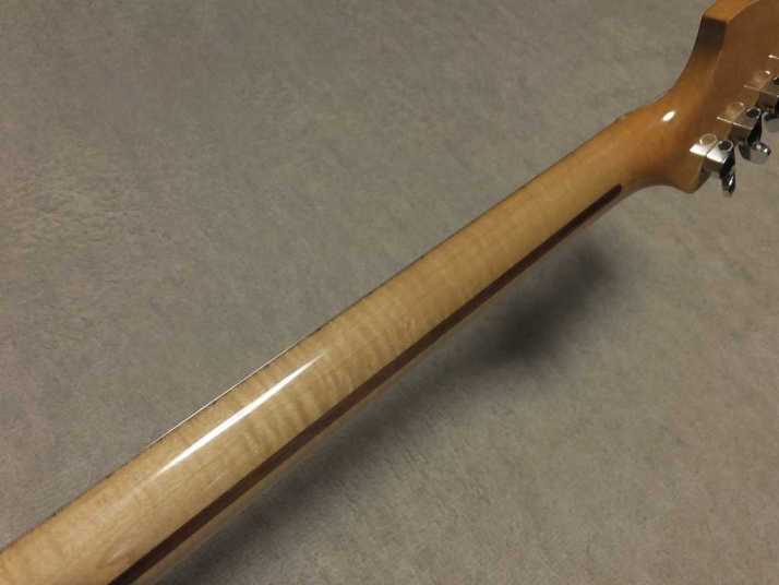 | H.S. Anderson MADCAT HS-2 Many people were talking about H.S. Anderson Guitar. Yes, H.S. means Mr. Hidesato Shiino, you maybe knew it. Now I'm working with him and managiong the guitar shop in Tokyo. I sometimes asked him about old days. Of course, I could not tell everything here. But I could tell that many comments on WEB sites are true or not. This HS-2 is probably made in 1974. It should be last production lot, Mr. Shiino involved. He started ESP in 1975. So, around this year, he concentrated ESP foundation. However, this guitar was made at same factory (closed to Morris) that time with famous Madcat. From the Logo mark, this strider is made in 1974. It means that it hasn't got serial number. From 1975, H.S.Anderson started the serial number. However, they used 2 type of logo mark. One is solid black another one is gold lined logo. From 1975. most of H.S. guitars used gold lined. The condition of this guitar is pretty good. Almost no scratches and dents. No corrosion on metal parts. The electric circuit is fine, look like brand new guitar (of course not brand new, anyway). This guitar will be shipped with hard case (not original).. If somebody interested in this historical guitar, just contact us! |