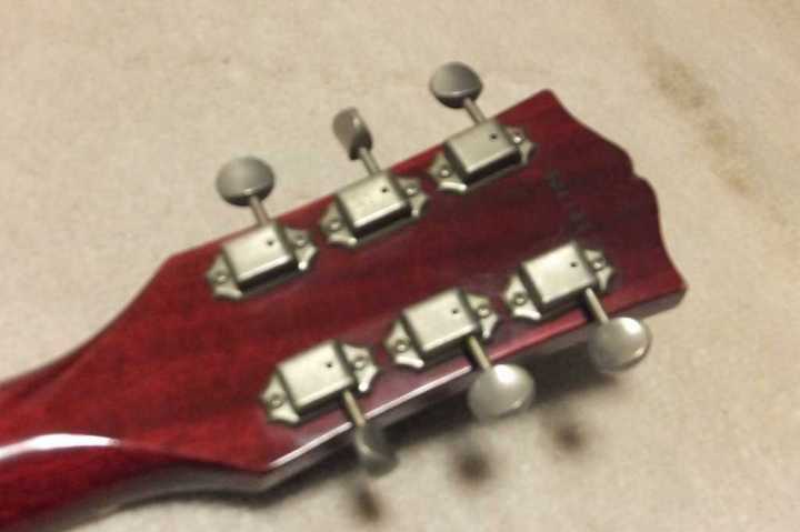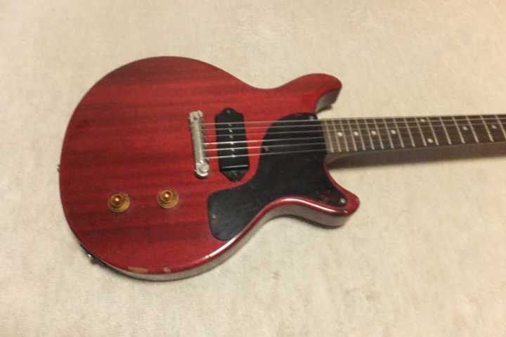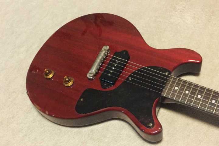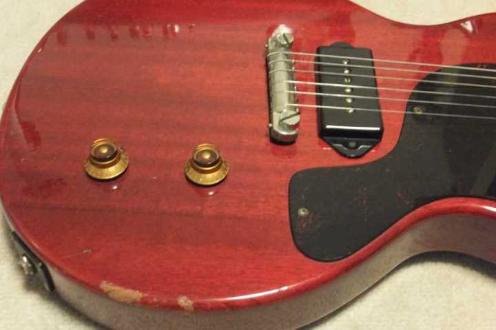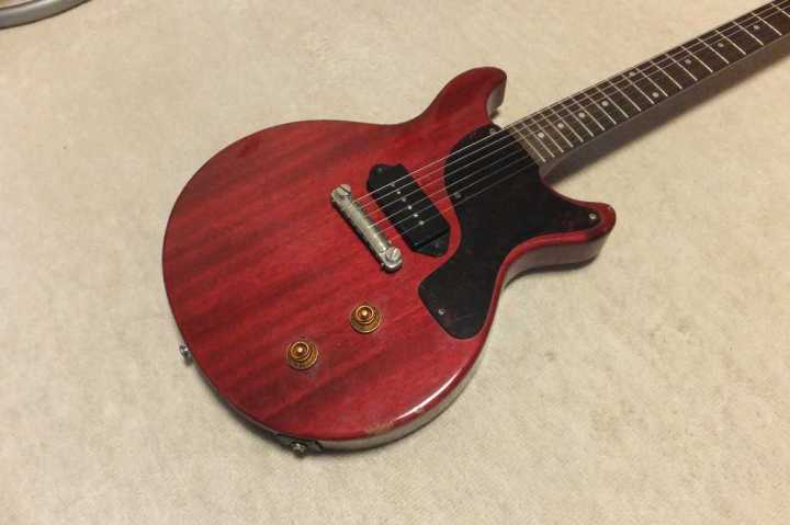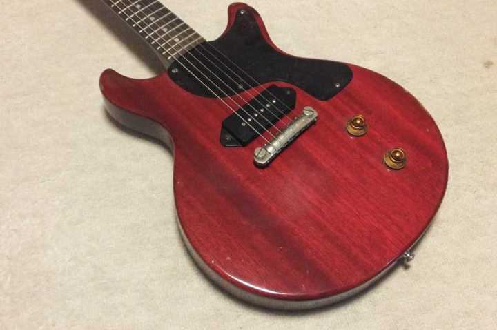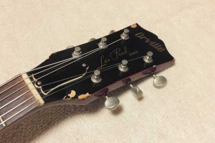 | Orville Fujigen made Les Paul Jr. TV model P-90 Type Pick up guitar is very popular even in Japan. Many people are looking for the Les Paul Jr, TV and Les Paul Special model. Fernandes, Greco, Tokai and other brands made many replica. Orville is only one guitar brand which Gibson U.S.A authorized. This TV was made by Fujigen from serial number. It is pretty good quality. The end users , even guitar shops in Japan said early Orville is absolutely better than current Gibson model. This TV model is fair condition. We could see several small dent the body shown on picture. Probably 1984 made from serial. Of course, the body is Maho (2-3P) with 3.4Kg. Pretty light weight even compare with my other stock before. The neck is Maho 1P. The nut width is 43.9mm. The nut is damaged. I'm going to change it bone nut before shipment. The neck is straight and frets are proper condition (a bit worn, but O.K for playing) The grip of neck is a bit fat like original Gibson. I rated this guitar as fair condition. There are many dents and scratches. This is only reason, I rated. But if you play this guitar everyday after getting, it is not really problem. It is good tone. You could enjoy P-90 sound with this guitar. We will ship this guitar with used gigbag. If you need the hard case, please check other page which we offer. Well, try JV legend guitar! |