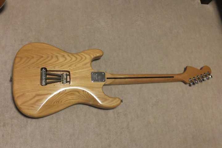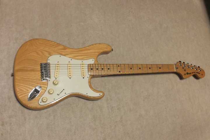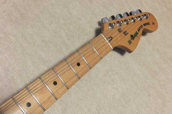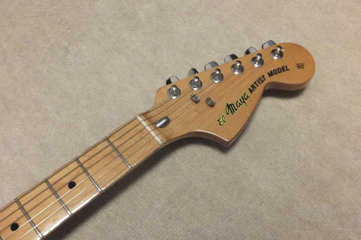 | El Maya Stratocaster SC-36 Artist Model El Maya guitar is one of my favorite JV guitar. It is very good construction. I could say I love "Joodee", "El Maya", "Yamaki" and "John Bennet". I have several El Maya Strat. El Maya has several Logo marks. They have the Artist model and Junior model. AS Artist model, El Maya offer the SCO-36. This model is top model of El Maya Stratocaster. It has the metal pickguard. The electric parts are inch size. These are small head type. They offered SC-36. This is large head model. The Junior series are SC-33 and 35 series. The different between SC-33/35 and 36 is neck construction. 36 type are 1P maple type finger board. 33/35 are bonded maple finger board. The large head replica has the U grip neck like Fender USA late 70's type. This El Maya has C grip with 41.6 nut width. The body is probably Sen (Japanese Ash) 3P. The weight is 3.61 Kg The body condition is not good. we could not see many dents and scratches. Electric circuits, PU and other parts are all original. This is not collection guitar. Just play!!! Well, try JV legend guitar |