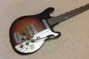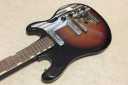| TEISCO WG-2L This guitar is not really my JV guitar definition. (my definition is 1973-1983 is real JV for me). I call them JV Bizarre guitars. I didn't pay attention for those 60's guitars before. Most of reason is that one of our shop client asked us to repair his Tiesco bass and Guyatone Guitars. He is famous guitarist here, Makoto Kubota (http://www.kubotamakoto.com/). He is really Japanese muscian. Please visit his WEB site. You would love it very much. So, after that, I started to collect some JV Bizarre guitars. The neck is straight. Maybe, it is lauan wood is use for both body and neck(looks like Moho). Nut width is 40mm and Rose finger board (22F) The scale is 628mm. The weight is 3.04Kg 2 Pickup are fine. The body has elbow and back contour like Strat. The tone is pretty dry and clean. I like it for the blues. It is really vintage tone. It is getting hard to find out the good condition JV Bizarre guitars. We are going to ship this guitar with Gigbag. Enjoy real JV guitar! |