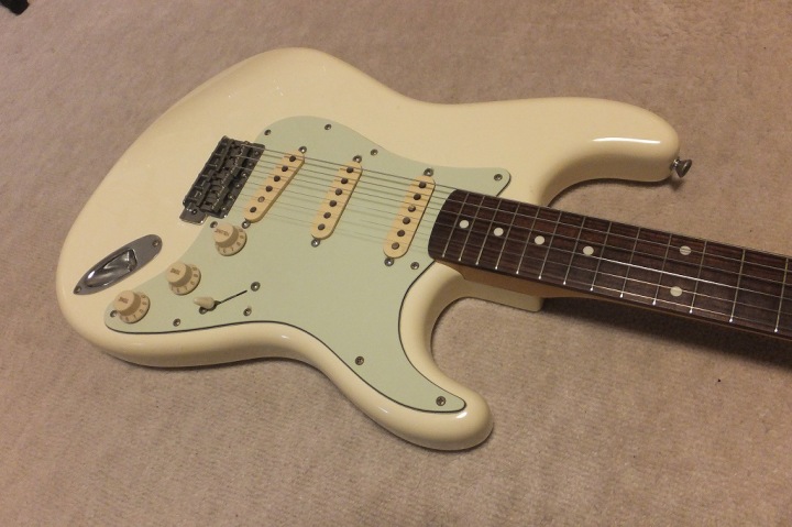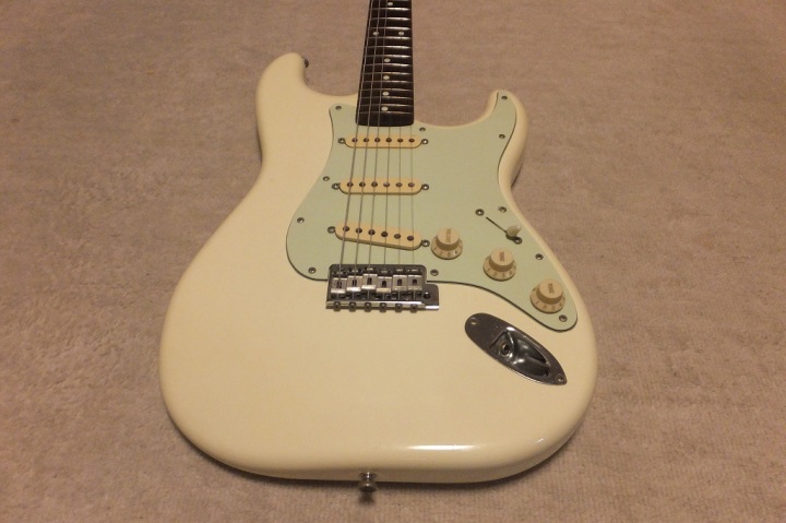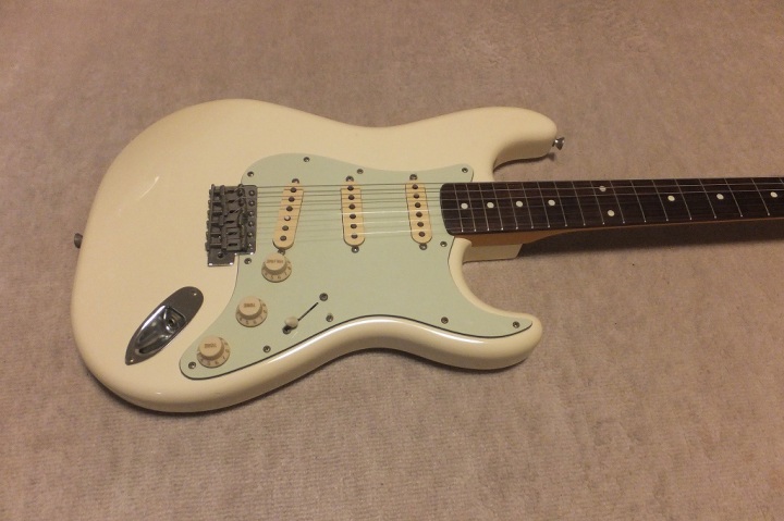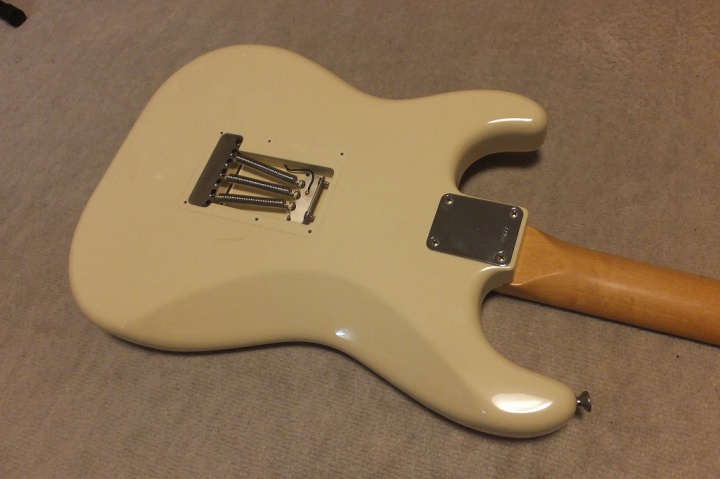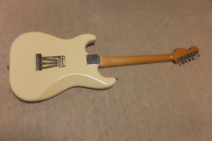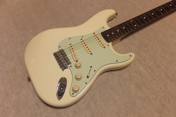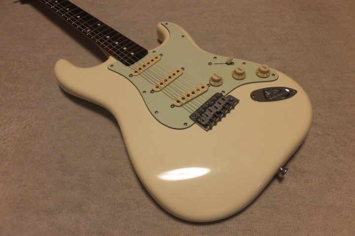 | Saymour Duncan DS-100 1989-90 ESP Made 62 model Several my friends who has been working for music industry here told me that early made Seymour Duncan was pretty good tone. So, I have been looking for only their "Traditional" series. This is recently I got. It is pretty good condition and no modification. So, I didn't touch so much for this guitar. I have only change the tremolo block to steel made. It makes much better tone. The body wood is ash 2P center bonded. It is approx. 3.6Kg. as Strat, it is a proper weight. This is not really JV guitar. only 15+ years old guitar. But it is good MIJ guitar. ESP has stopped the production of Seymour Duncan guitars. It is just rumors that Fender claimed ESP and this series was obsoleted |