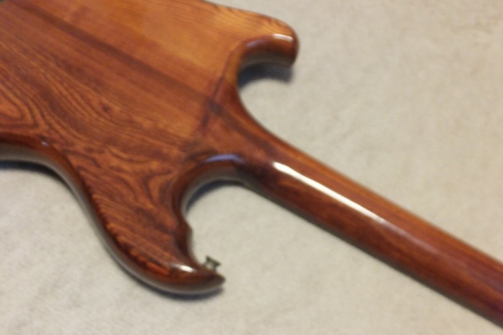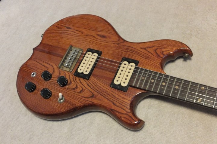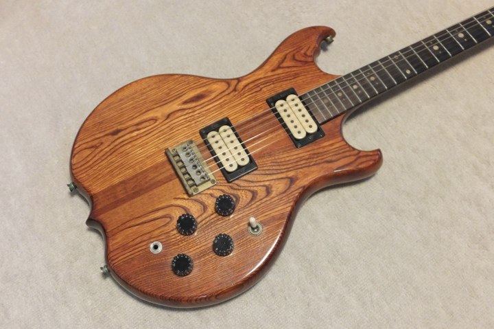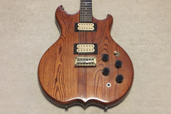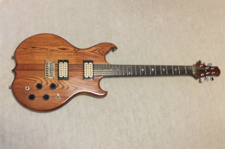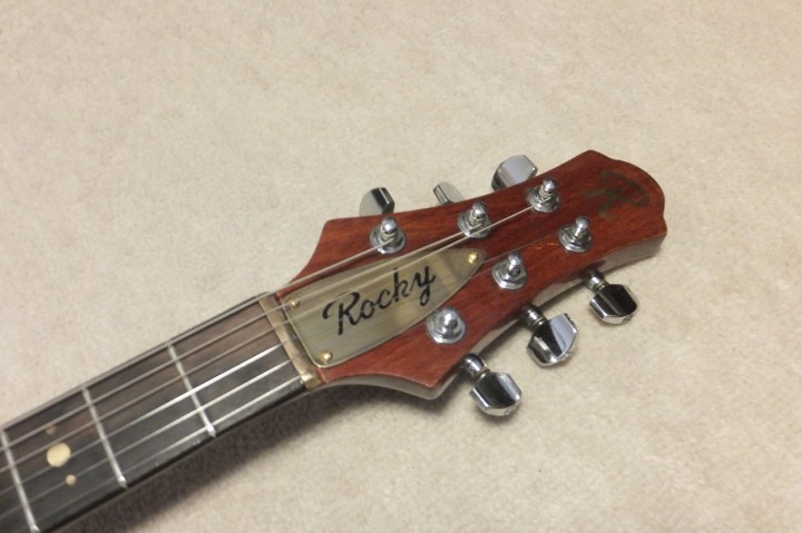 | Rocky Guitar I'm not sure about this brand. I got this because this guitar is though neck construction. It looks like Matsumoku made guitar. However, the quality is not really like Matsumoku did for Aria Pro II or other OEM. Well, I have 2 Rocky guitars here. It is completely same specification. So, I keep one and sell this one if somebody wants. The neck is 3 Ply. The center should be rosewood, the side are Moho. The nut width is 41 mm. The grip is like sift V shaped. For the high position, this shape will be change to C grip like. It is very easy to play (well, it depends on the player). The body should be Japanese Ash (Sen). It is sold wood each side. The weight is approx. 3.55Kg. Pretty light weight. I'm not sure the pickup is original or not. It should be original from circuits. It is pretty simple 2V 2T circuits. Well, I prefer to change it by mini-Switch to get more unique tones. Well. good guitar for playing. I like. Take this guitar and modify the circuit with lasted pickups. It should be pretty interesting for you. |