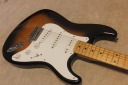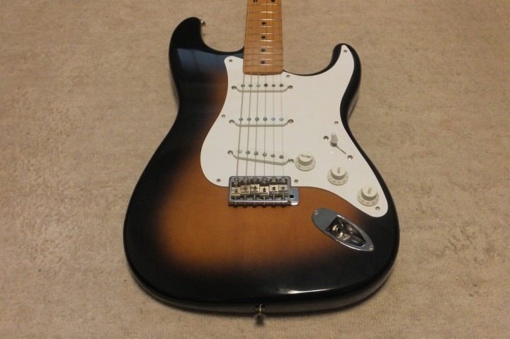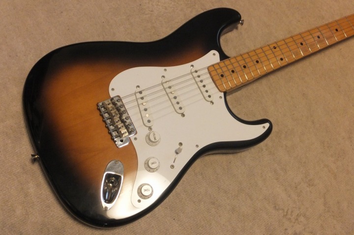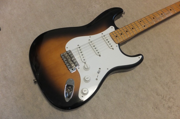 | Fender Japan ST-57 Strat MIJ Fujigen made J serial As you may know, Fender has stopped Fender Japan production this year. Now, New Fender Japanese office is only asking the Dyna Gakki to produce aerodyne series guitars and basses. So far, it is only the way you could get Japanese made Fender replica from the second hand market. This guitar was made in 89 or 90 made by Fujigen. This guitar was no modification. So I didn't touch so much, just check the functions and body cavity. whether it has the modification or not. I felt it is good condition. So, we just clean up. The body material is maybe basswood 2-3P with 3.52K weight. The neck is maple 1P with C grip The finger board paints are bit peel off. Maybe the previous user did it vintage looks There are not so many scratches and dents except the finger board. We will ship this guitar with the Gigbag. Well, just try JV with beautiful tone PUs. |