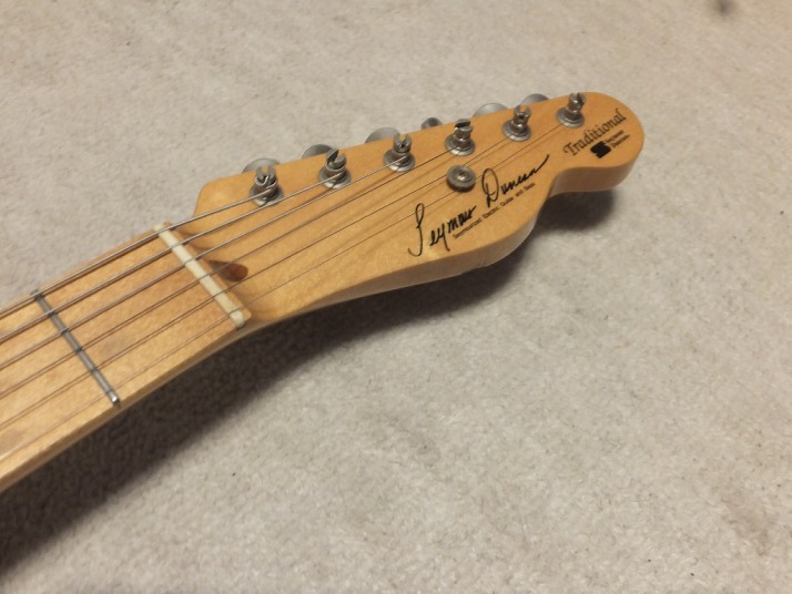 | Seymour Duncan Telecaster DT-100N/M Several my friends who has been working for music industry here told me that early made Seymour Duncan was pretty good tone. So, I have been looking for only their "Traditional" series. Well, this is ESP Japanese factory made guitar, anyway. This is recently I got. No modifications are done for this guitar. The fingerboard became a bit dairy like vintage guitar. The body wood is ash 2P. It is approx. 3.4Kg. as Tele, it is a proper weight. The neck is 1P Maple C grip type, not really fat and thin. PU should be original Duncan, but I felt it is a bit muffled sound. This is not really JV guitar. only 23-24 years old guitar. But it is good MIJ guitar. ESP has stopped the production of Seymour Duncan guitars. It is just rumors that Fender claimed ESP and this series was obsolete. |