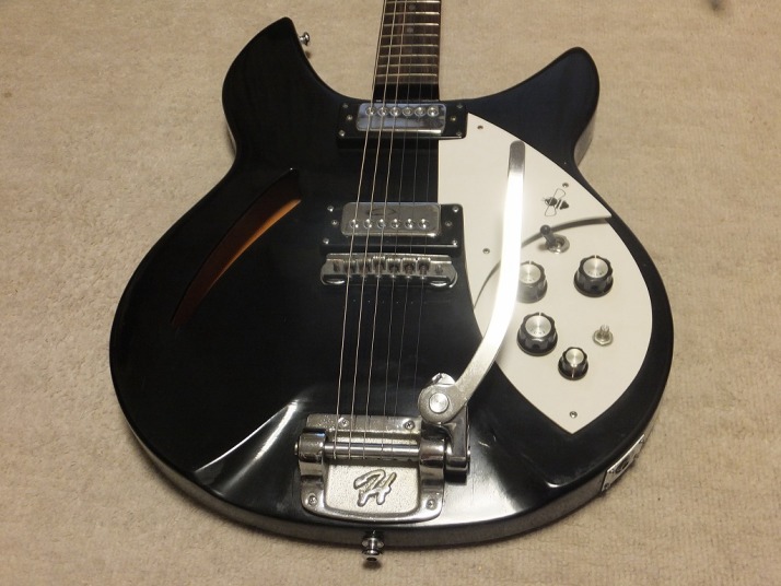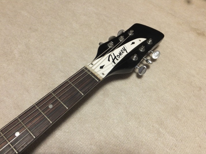 | HONEY SG-5 Around 1968 made HONEY was established by formal Teisco stadd in 1967. Well, it was a time Kawai just took over Tesico facotry. They made several replica model. At the beggining, Honey started the amilifier, but soon be, they srated the guitar production. Probably, Mstsumoto Teisco compay was the builder (to avoid complcations, this Matsumoto Teisco was also independet from tesico when Kawai merged them). Honey was very short life company. In 1969, many guitar manufacturers were bankrupted by recessions. This Rick model is not like Greco or Fernandes replica. Both of them are pretty good replica, as you may know. Honey is good but they didn't copy them well. As a guitar, this is pretty fancy. I like it. the sound is not like other Rick replica. Just like semi-acoustic. One of knob is missing. I will replace it when I shipping it. It may be no letters on knob top. I'm not sure the body material. Some old catalog said Japanese maple body. The neck is straight and 39mm nut width. The frets are proper condition. I have checked all inside and cleaned this guitar. Well, this guitar is collection guitar. I do not like someone play this guitar as main guitar. Hope, the buyer will keep this guitar with condition and proper continuous playing. These will be very helpful for this guitar. |