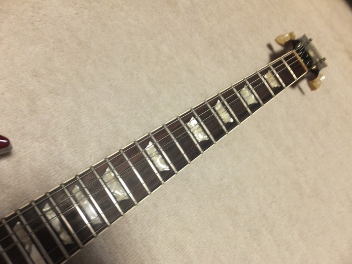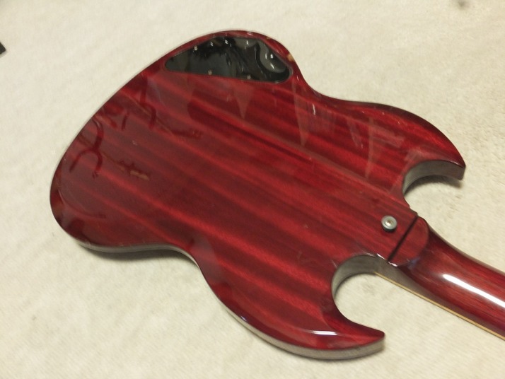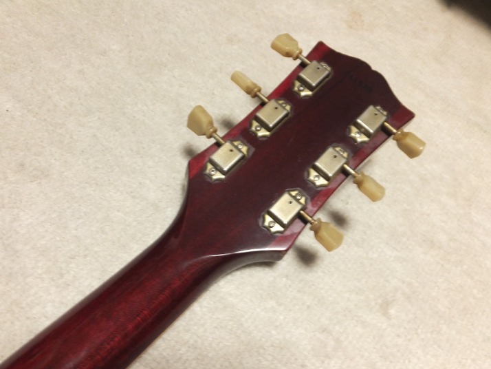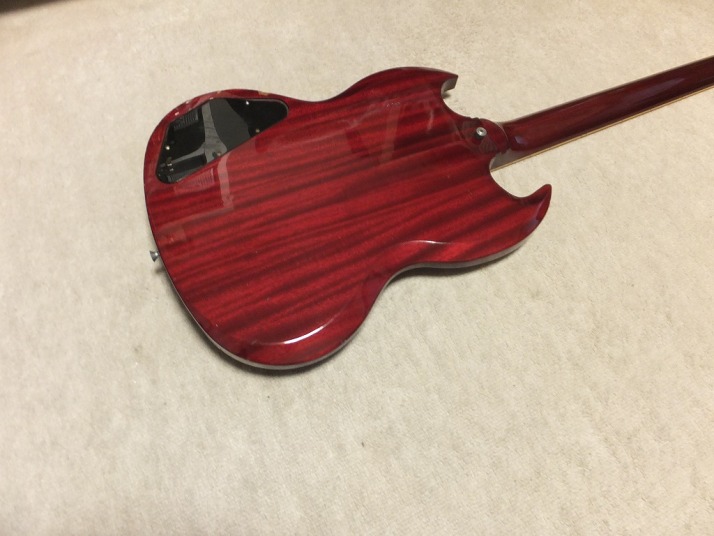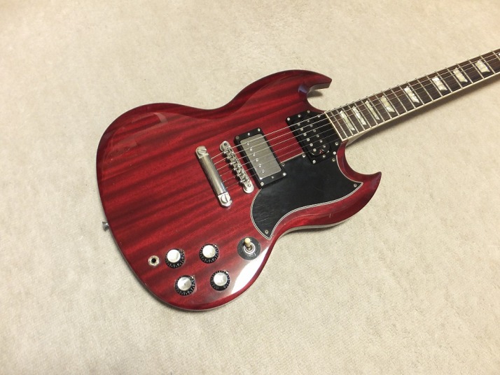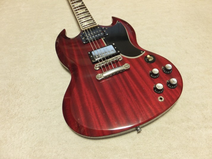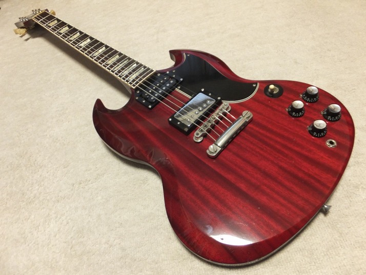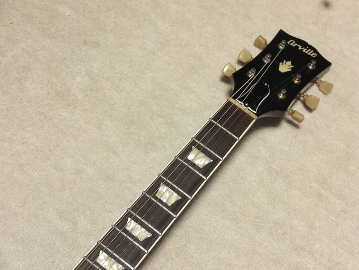 | Orville SG-62 Fijigen made It is getting tough to find out good condition Orville MIJ guitar. Like G serial and numeric serial are getting more expensive. We could see Korean made K sticker Orville. However, MIJ Orville is completely different quality. (Many people said K serial is MIJ, but when you check the body construction compare with Terada/Fujigen made, you may be disappointed.) This is MIJ SG62 made by Fujigen in 1994. It is fine condition. It has the deep joint set neck constructions. The neck is straight, Truss-Rod is workable, Frets are fine (bit worn, because of used) and electric circuit is fine too. The grip of neck is pretty standard, not fat or thin. Well this guitar hasn't got ugly dents and scratches. It is fine condition. The problem is that PU neck hasn't got the metal cover and back panel was replaced... Maybe, I would fix it before selling...Please check it with us if you would like place an order. The body weight is 2.79Kg It is pretty light weight. I love it pretty much. Pretty good tone. You can Play like AC/DC We will deliver this guitar with Gigbag. Please try Japanese Vintage guitar! |