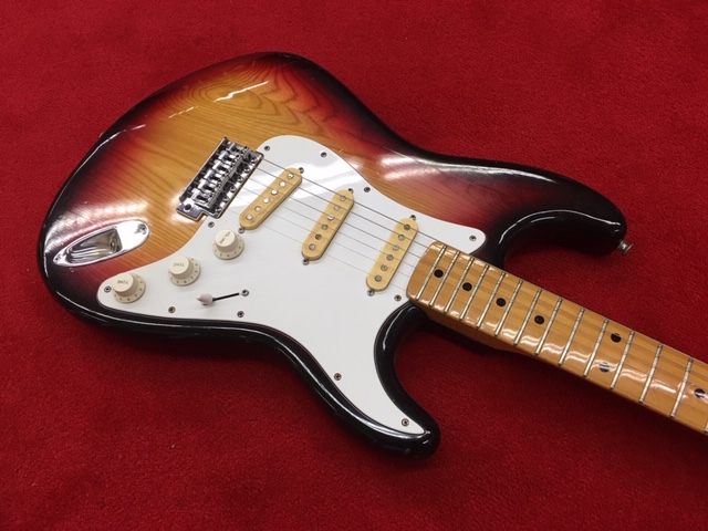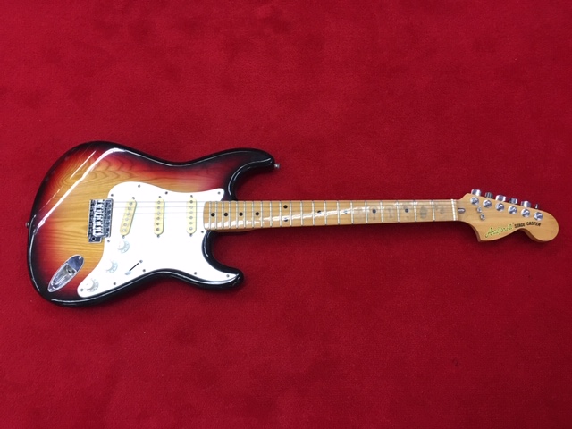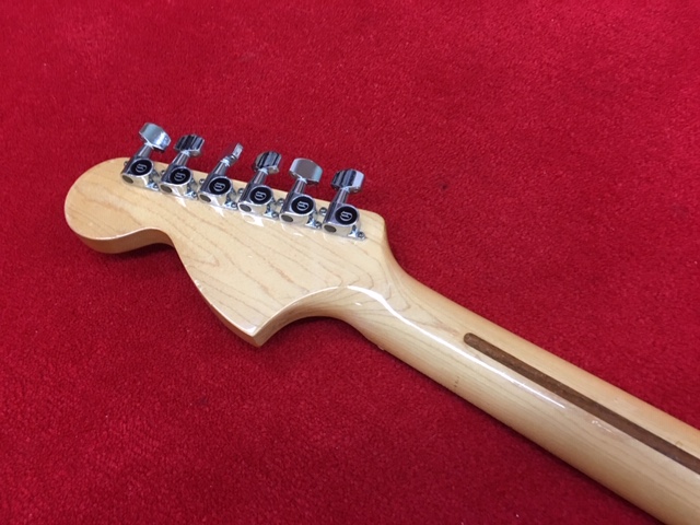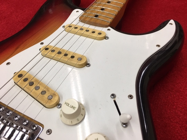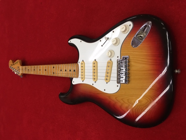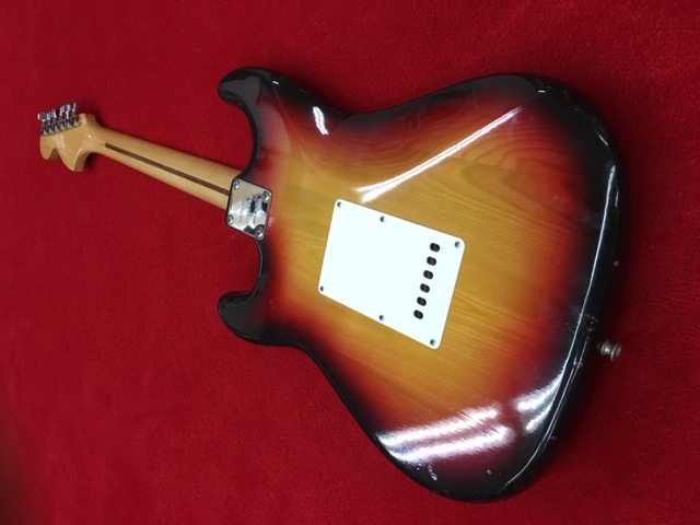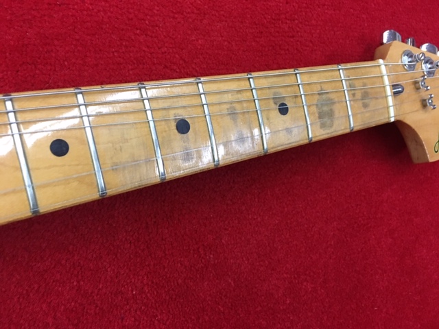 | ARIA PRO-II Matsumoku Made Stratocaster 1976 It is fair condition Matsumoku 76 made Strat replica. This is original condition large head type. The finger board is bonded maple type. The finger board was a bit scratched on purpose by previous owner. The frets are fine a bit worn. But no need to re-fret or filling work now. The neck is straight and truss rod is working fine. The nut width is approx. 41.6mm with soft V grip. The strings height is about 2mm at 12F. The body is SEN (Japanese Ash) 3-4P with 3.63Kg. Well, 40 years old guitar, please do not expect a beautiful brand new guitar. But the body hasn't got particular dents and scratches, well only finger board has scratching. You could play this guitar when you get it. The guitar will be shipped with used Gigbag (not Aria made). Original Army bar will be sent too. Please enjoy JV guitar!! |