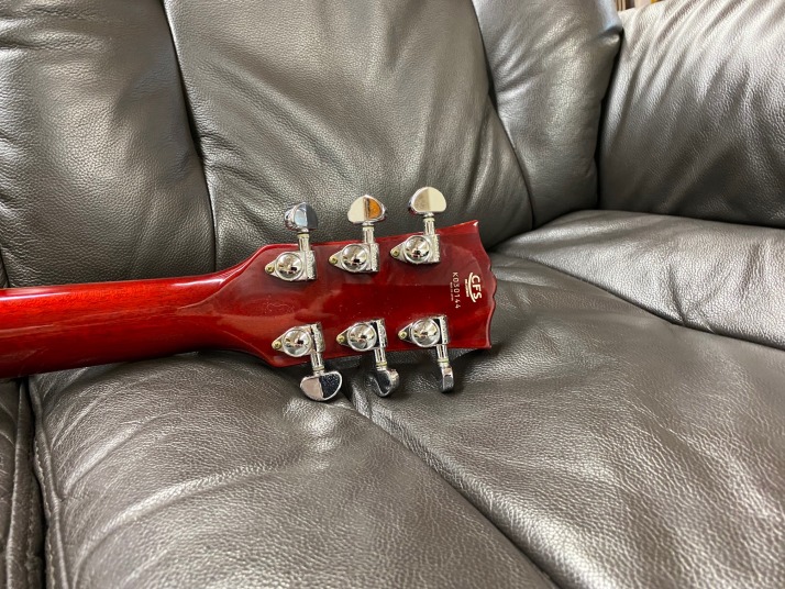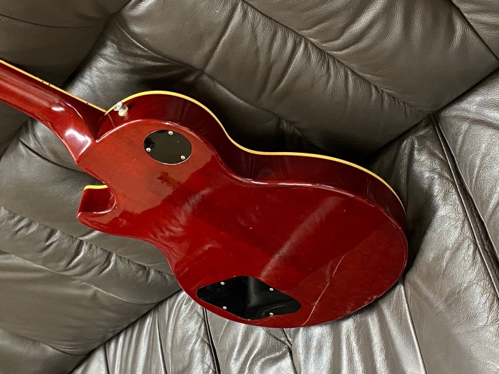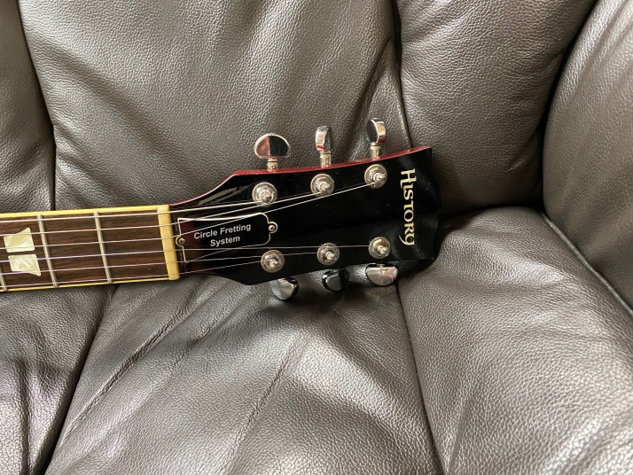 model on this WEB site before. Well, many people asked me which is best Japanese Les Paul type Guitar. It depends on the budget, of course. However, if you are looking for the guitar less US$ 1,000., I replied Kanda Shokai Ornetts (I do not recommend EGF, anyway) Fujigen History Fernandes FLP (Made in Japan before 1983) But original list price should be over US$ 1,000 History is almost same with Orville guitar (After Terada) . Both are fujigen made guitars. Good quality compare with other brand name. This is probably made in 2002. The neck profile is standard Las Paul model. The top quited wood is vendor on hard maple. Early time this technique was not really good. But this guitar time, this is pretty stable technique and not peeling off. History has the circle fretting system. It give us more accurate intonation. This is one of reason I like this guitar. When I got this guitar. Previous user changed the pickups with open type humbuckers. I hate them and changed them to the brand New Gotoh Classic Alpha type. I have changed all electric circuit (CTS/Switch Craft, Belden and Orange Drop) . I did necessary overhaul with new parts. Now, this guitar is really good tone. I could offer this guitar with hardcase (second hand). Just try MIJ guitar |