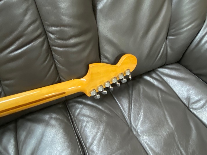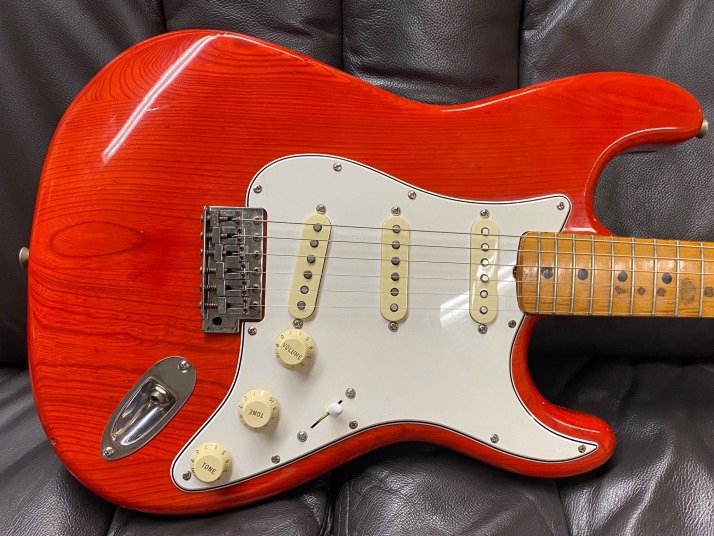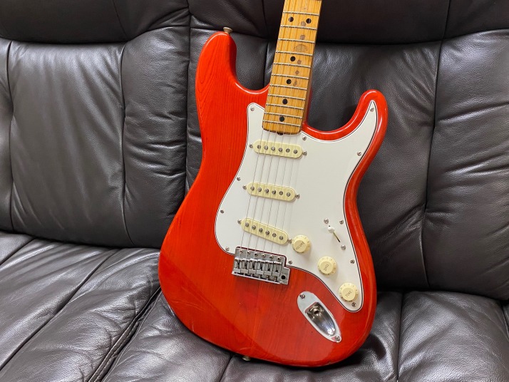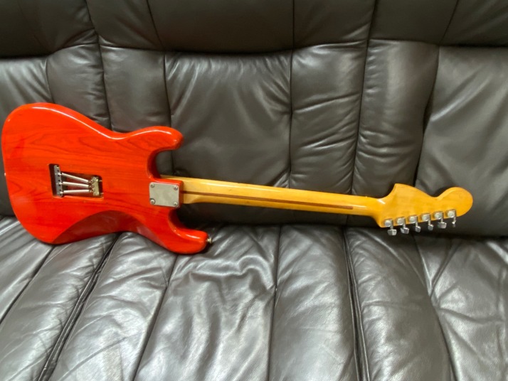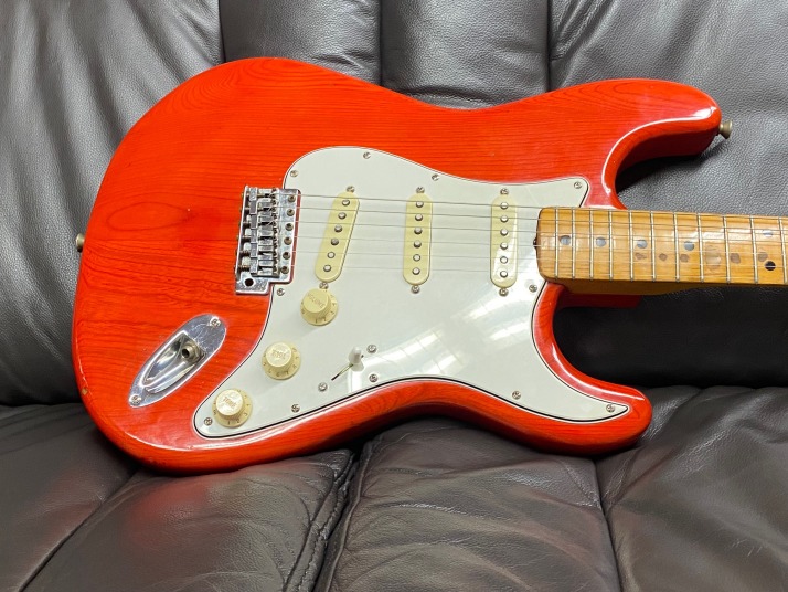 | ESP Navigator Esparto Strat model (Late 70's made) Pretty good maintenance Esparto strat. The electric circuit has been modified by previous user. This guitar has the FENDER Original f57/f62 Strat Pickups Set CRL 5way, CTS pot, and Emerson Treble bleed circuit. Many people are looking for the Esparto model. It is hard to find out the original condition. Well, this one also modified but if I would play, I would modify it same way. When I got this guitar, previous owner changed all electric parts. Those parts are all good one compare with orginal one. Fender USA pickups, CTS pot, and CRL selector are used now. I have changed the tremolo springs. I do not like rusted dull springs. These make a not good tone. So, I normally change them to the new one. The tremolo unit, nut and tuner are original. The frets are not like brand new, have dents a bit. Not necessary to refret now! The body is the Japanese Ash, well, over 40 years old guitar body and neck. Good trans. red body. These make good tone with Fender pickups. Yes, neck is straight now. The truss rod is still work. Good time JV guitar |