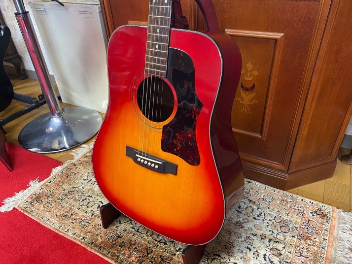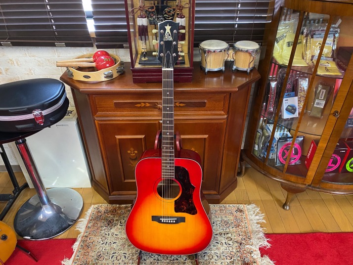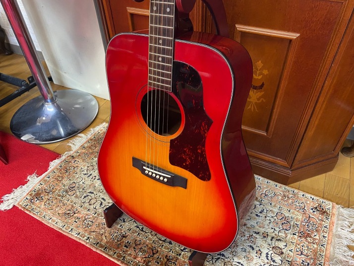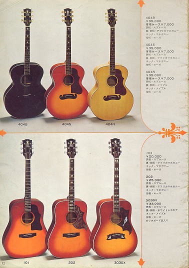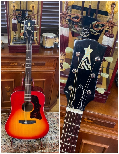 | Canda Accoustic Guitar #101 (probably Fujigen Made) When I was 13 years old boy, most of guitars are so expensive. First Guitar, I got it was Morris brand Les Paul custom model, bolt on neck, not fancy expensive one. I went to many music instruments store to look the guitar and got many catalog. These staff can take me dreaming world. I knew Canda guitar on Greco electric guitar catalog. It shows Canda as Gibson' accoustic guitar model. Well, I didn't know these are Gibson copy. The Cheery Sunbusrt body gave me very strong impression. After 50 years, I found a good condition of Canda guitar. Well, I took it and change the tuner (new Gotoh and bridge pins). Looks good and sound fine! It is my dream guitar! |
