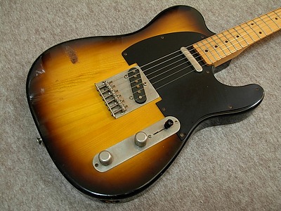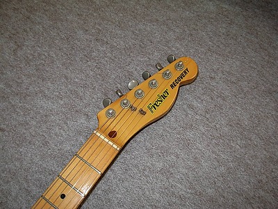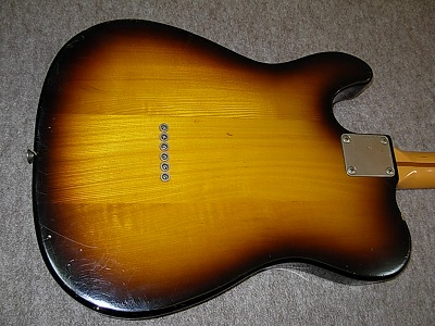 | FRESHER TELECASTER REPLICA Sunburst 1981 I knew most of JV lover knew this brand name. Fresher has a very long history like Greco. It takes more writing if I explain all. Anyway, Fresher has 4 historical period. We could specify it by their Logo mark design. Probably, this model is made in 1981. My impression of Fresher was juts cheap/Student guitar. However, in 1981, they have changed the manufacturer. Chushin Gakki made this time of Fresher. (Currently, they are producing Jackson/GroverJackson under license) My impression has been changed after playing this guitar. Good guitar, isn't it ? Also this is very rare color, never seen it (This is a reason I bought) Very regretfully, like finger size dent on top (maybe burn by lighter a bit?). That's all. Beside that, Maybe we could use this guitar even recording (we need shielding). Frets/neck and electric circuit are all fine. |