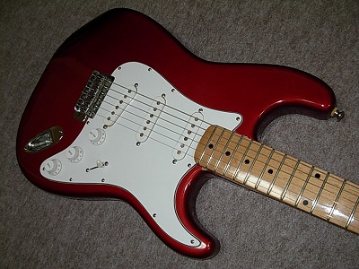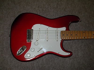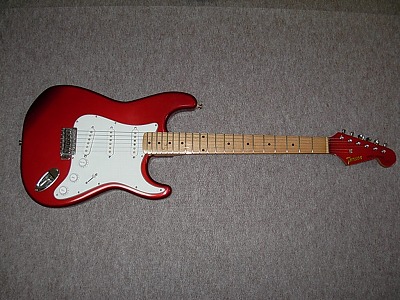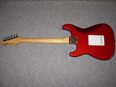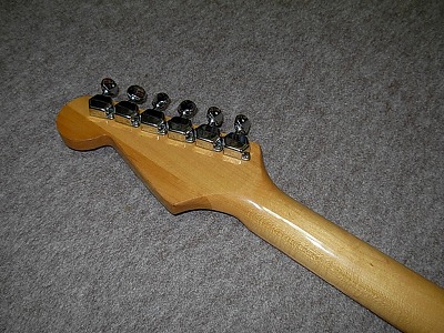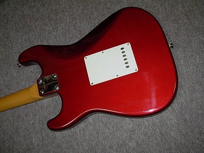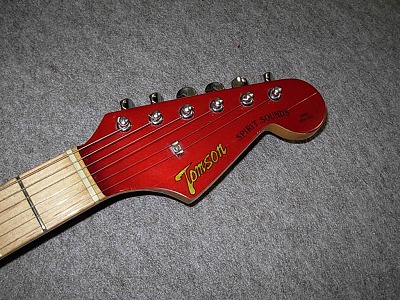 | Tomson Stratocaster I think most of Japanese 40 years old over guitar player should know this brand. Tomson was always on the young major weekly magazines as mail order guitar. Just like Sears, you could imagine. Well, basically, they offer the cheap guitars. I remember their early Les Paul was thin wood laminated with Bolt on. The PU loos like the humbucking but actually the inside was single coil with ferrite magnet This guitar is maybe late stage of Towson history. It is much better than my expectation. I bought this for just collection to compare with others. Someday, I would like to make a comparison between 70's made JV guitars. Good condition as you can see. No serious dents and scratches. Maybe, maybe just keeping in the case ??? The neck is very fat like Les Paul old. Good era's great guitar ! |