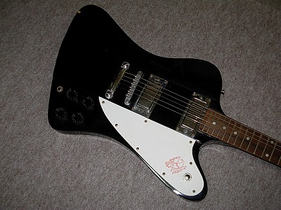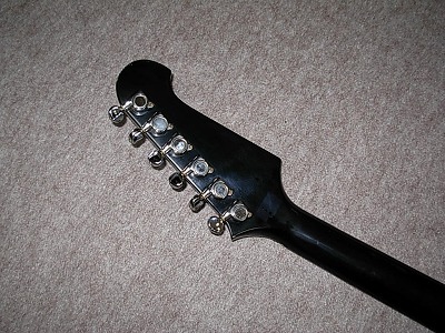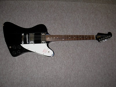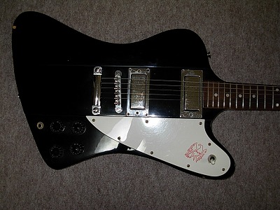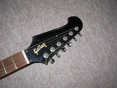 | Gallan - Kyowa - Maybe Chushin Gakki made Firebird Replica This is very rare Firebird. Good condition too. Probably, this is set neck not through neck type. But I like it very much. I owned several firebird replica before, but I sold all of them. Chushin Gakki made this guitar, They are producing Japanese made Grover Jackson, B.C. Rich and etc... Hisonus Guitar too. Pretty good quality and good tone. I didn't expect so much about good things for this guitar. But After I played, I keep this guitar for my collection. I don't have any information of this guitar. I only think the body material should be Mahogany because of weight. This huge body weight is only 3.5 Kg. Probably Mahogany. The sound, pretty much like SG. With a bit distortion, sound like Johnny Winter ! Good era's great guitar ! |