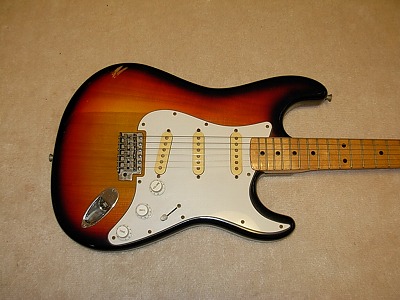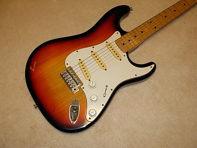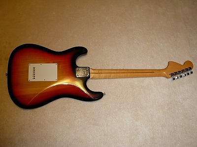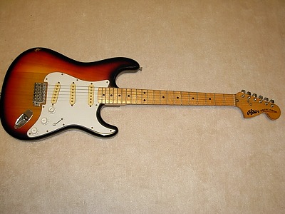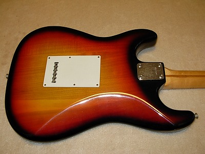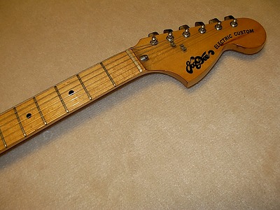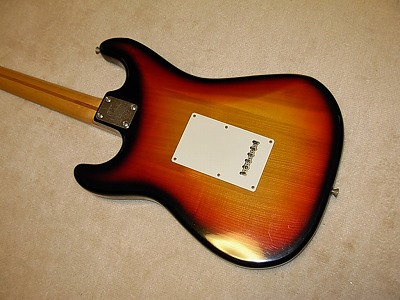 | Joodee Stratocaster The Manufacturer name should be Dyna Gakki. They are currently producing Fender Japan with Tokai Gakki. Daion is distributing Joodee, so we thought Yamaki made this guitar. However, recently I got an information that Daion asked Dyna. Dyna had just started the company that time. There are some possibilities that early Joddee was made by Dyna, later model was made by Yamaki... Well, I don't have any idea. The condition of this guitar is great. Well, it should be over 25 years old guitar, even so, it is still beautiful looking. The neck, frets and electric circuits are proper condition. The string hole of back panel have been expanded. It is pretty good tone. Well, very rare guitar too with this condition.. I have been collecting many JV guitars. If you are really fan for JV rare brand guitar and would like to keep the collection (not for re-sell), just ask me, I would consider to sell. Good era's great guitar ! |