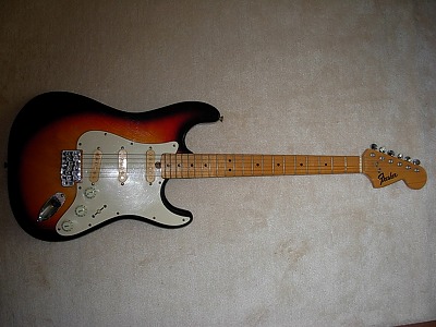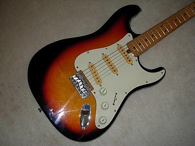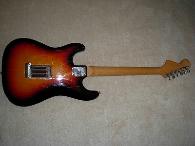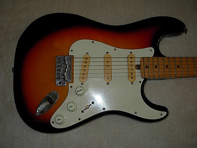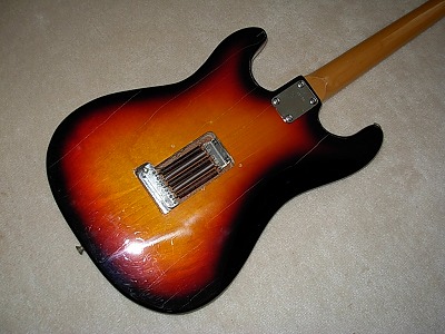 | FRESHER STRATOCASTR 1st Generation Fresher 1st generation Strat type guitar. Absolutely not perfect replica of Stratocaster. Fresher made this guitar with Gibson type nut. But The logo mark is very similar with Fender. They made this type logo only for 1973-75. KYOWA is just distributor of Fresher. This early Fresher was made by Matsumoto Musical Instruments MFG Union. This is not Matsumoku Gakki. Well, the later Fresher guitars were made by Chushin Gakki. Anyhow, this guitar is very early time, rare guitar. As Stratocaster replica, this guitar is not smart like Fernandes or Greco. However, it is historical guitar of Japanese Guitar industry. The Sunburst color is not really like Fender original. I guess the worker never seen the original Fender USA. Maybe, just have a photo...and paint like this. Tremolo unit are not like Fender too. They bend the steel plate like C, then made the steel block part. Therefore, this guitar tone is not really Stratocaster. The condition of this guitar is good. Well, it should be 35 years old guitar. It seems that this is all original condition. The neck, frets and electric circuits are proper condition. I have been collecting many 70's made JV guitar. If you are really fan for Founder or JV rare brand guitar and would like to keep the collection (not for re-sell), just ask me, I would consider to sell. Good era's great guitar ! |