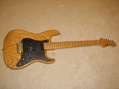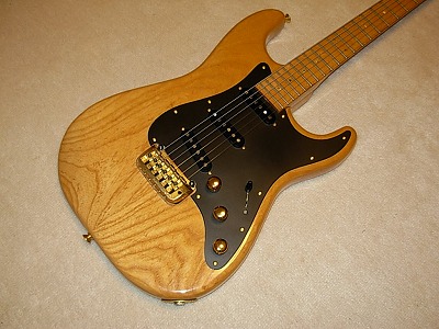 | Artex hand craft ATE series guitar Artex was the hand crafted guitar manufacturer here. Flex Corporation distributed this guitar mainly custom order made. The musician used this guitar are David T. Walker, Bradley Kopp, John Mooney, Paul Raymond and Japanese Famous Blues Guitarist, Jun Yamagishi. I knew the president of Flex Corporation. He used to work for Aria and was in charge of domestic distribution. He is very serious guitar industry management. He is currently managing the Chinese factory and supplied for Japanese and European market with his new guitars. Artex is a guitar targeting the serious or professional musicians. They have tried to keep the price proper. However, they used very good wood/hardware materials. Please have a look the photos. The wood material is beautiful. They used the 2P ash wood. The neck is very good birds-eye maple. When, I get this this guitar, the metal parts has been rusted a bit, electric circuits are damaged. I started the rebuilding as follows : 1) put the copper shielding (special made UL510/FR spec)) to cover all area included the Tremolo unit cavity like Carlos Santana Strat. 2) Put the Mojotone oil capacitor 3) Use WBT Silver contents solder 4) Output belden silver coated copper 20AWG wired 5) New Gold screw and knobs. 6) New Switch Craft Out Jack I sometimes use the silver shielding paint. But this time, I use the copper tape because the use would like to take off, depend on. The PU cavity is original. I didn't expand the bridge cavity for hunbucker. You could put humbucker on instead of single. Now, this guitar is almost noiseless guitar. I think you could use this guitar, even for the recording. The neck, frets are proper condition. I have adjusted. Price is including the new Black color hard case. It is very good pricing, if you are considering to have good quality guitar at proper price. |