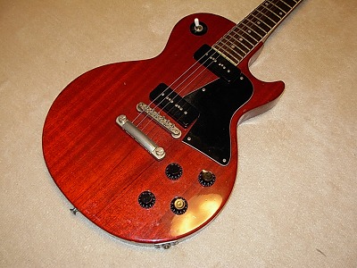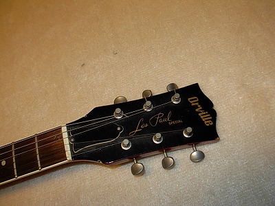 | Orville by Gibson Les Paul Special Model This is Japanese made Orville. Probably Fujigen made ? I'm not really fine about the Orville serial number, but this is made in Japan. This is prett good condition. At the body bottom, we can see the dents (Paint off) So far, that's a major weak point of this guitar. The neck, frets and electri circuits are fine. The sound is pretty cool. Typical LP-Jr. Sound. Well, this is specail model. So you could enjoy more warm tone by the Neck PU. The Bridge PU's knob is cracked. I'm going to replace it before delivery. It is not really easy to find out the Orville Les Paul Jr. and Special here with good condition. If somebody look for this, probably, this is good purchase Orville guitar. We are going to ship this guitar with soft carrying case. If you would like to get the hard case with this guitar, just click above. Good era's great guitar ! |