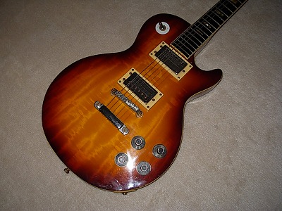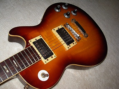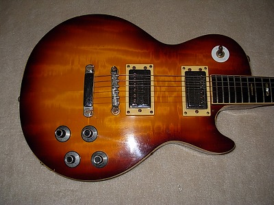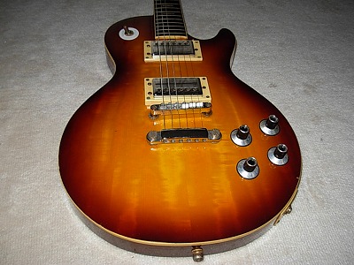 | ELK MB-440 Les Paul model Guitar ELK is very old Amplifier and guitar manufacturer here. I thin they started in 60's. So, they made more antique designed guitar before 70's. ELK products was used by many professional musicians here. I remember their Amp is just like Fender type, It was so expensive for boys. The guitars were pretty expensive too. In 70's they started to produce the several replica guitars such as SG, Fender Tele, ST, PB, JP and etc... This LP is made in 1972 as a first good replica of LP. I have checked this guitar compare with other LP replica. Well, this guitar has already set-neck construction. The PU is also real humbucking type. The tuner is maybe replaced. The body arched top is not really like Gibson. This guitar's top is a bit flat. But it is really beatiful wood. The sound is almost like LP model. Felt a bit tight tone. The condition of this guitar is good. Well, it should be 36 years old guitar. The neck, frets and electric circuits are proper condition. Logo mark was sticker type. Maybe it was lost. The previous user put the replica Metal logo mark on. I have been collecting many 70's made JV guitar. If you are really fan for Founder or JV rare brand guitar and would like to keep the collection (not for re-sell), just ask me, I would consider to sell. Good era's great guitar ! |