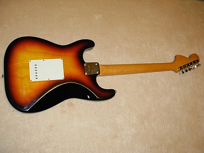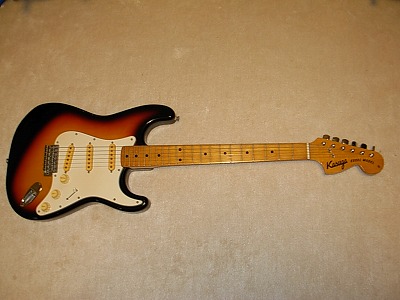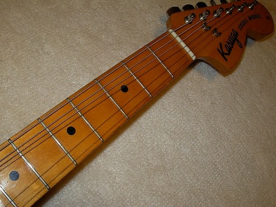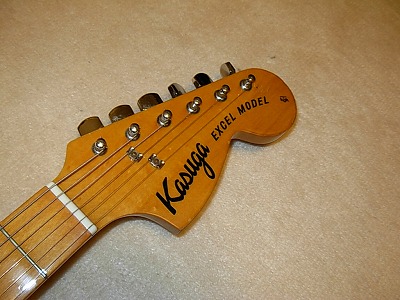 | Kasuga Stratocaster This is very rare Kasuga Brand Stratocaster. We could see "Heerby" Excel Guitar here. However, Kasuga marked is very seldom to see. Anyway, this guitar is before Heerby brand guitar. The nut is like Gibson style instead of fender type (have groove on finger board). Heerby Strato is grooved nut slot. It should be earlier design. The electric circuit are very similar with Heerby guitar. Well, almost same. The tone is a slightly different from Start because of Nut ? Well, good condition guitar still. The neck, Frets are fine. It is pretty good quality replica. You could enjoy this guitar well. |