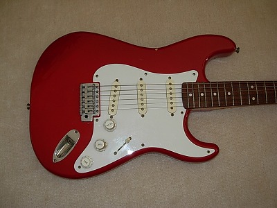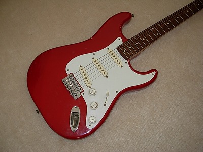 | Fresher Stratocaster 4th Generation This is 4th generation Fresher made by Chushin Gakki. In 1980, Kyowa shokai shifted the supplier to Chushin Gakki completely. As a replica, this Logo time guitar is closed to the original Fender guitars. Kyowa shokai was still targeting the middle class users. Therefore, this guitar was sold cheaper than Greco, Fernandes and Tokai. But absolutely better than Mail-order Guitars. Well, this guitar is really good sound. Personally, I recommend you this guitar. Better than FJ ? Really good. Maybe, we should change the electric components to better one. Because too old, have the noise. But PU and Body tone are fine. Of course, the neck, frets are fine. The tuner is rotomatic type (maybe made by Gotoh) It is pretty good quality replica. You could enjoy this guitar well as F Killer. |