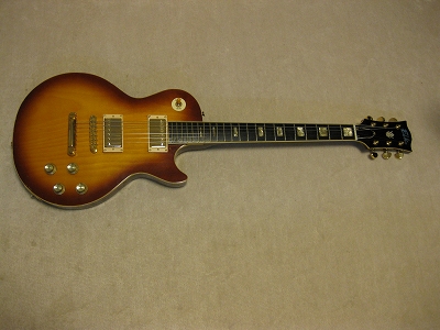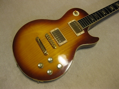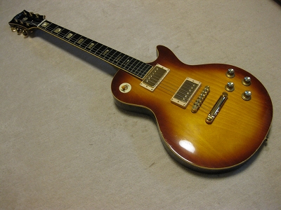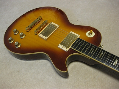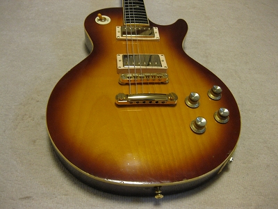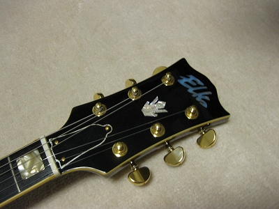 | ELK Les Paul STD model (maybe Matsumoku made early 70's) Very old. more than 35 years old ELK brand Les Paul. I have a few ELK guitars. I love it because these are early 70's guitars. It is getting hard to find out the good condition one. This is not original guitar. I have rebuilt using many new parts on. Well, only body is original. I have changed parts as follows: 1) Tuner Grover 1:18 New gold 2) Pick UP Stewart Mac Golden Age 3) Mount Ring & strap Pin 4) All circuit use all brand new Potetiometers are Japanese with Sprugue, Switchcraft jack with Belden wires/ 5) Selector Switch Switchcraft with gold washer 6) Gotoh Bridge and Tailpiece 7) Cavity panel (new) 8) New Knobs The brand logo and crown mark were real inlaying. The original ELK have the metal plate type. Most of case, the user lost it. I have another ELK. We traced the original logo made real white Pearl inlaying. The neck is straight/ The truss rod is still working. Frets are fine to use. Good tone with silver coated hook up wires. Actually, all parts are new. So it almost like New guitar. However, body is very old. It has the scratches and dents on body back. Old tuners hole were repaired (not colored yet). Anyway, I have heard this guitar is Matsumoku made. The set neck joint is very similar with old day Aria Pro. I would say Aria Pro Les Paul Neck is similar. It is deep joint type and set with screws. Pretty good tone. Currently, I set the 009-046 string. Maybe 010-046 would be fine. Pretty warm tone. could use the Jazz music? I like it. Well, try JV legend guitar! Note : I have mixed this guitar file with other guitar. The pricing indicated are updated correctly now. |