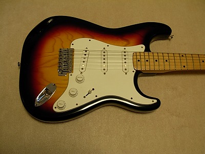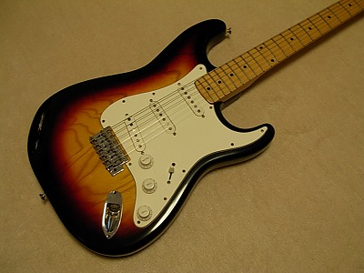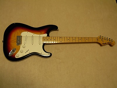 | Suzuki Stratocaster (Kiso Suzuki Violin) The Manufacturer name is Kiso Suzuki Violin Co., Ltd. They made many brand guitar as OEM base. Thunder/Tomson and Suzuki were their main brand name. This company was merged by ESP. Now you could see the ESP Kiso factory, it used to be Kiso Suzuki Violin. Kiso Suzuki Violin made mainly Violin. Then, They started the acoustic guitar range. They use "Suzuki" brand and "Three S" mainly. The electric guitars which they made were beginner class model mostly. This Suzuki Stratocaster is pretty much closed to Thunder (well, same factory made and use many same parts on). So, the construction is not prefect replica of Fender Strat. The condition of this guitar is great. Well, it should be over 25 years old guitar, even so, it is still beautiful looking. The neck, frets and electric circuits are proper condition. A bit different tone from Start (I felt bass tone is weak, because of their bend steel plate string block). I personally like Kiso Suzuki's technical design. They reduced the production cost a lot to develop like bend steel plate block. I could feel their soul to make a proper guitars in 70's-80's. I have been collecting many JV guitars. If you are really fan for JV rare brand guitar and would like to keep the collection (not for re-sell), just ask me, I would consider to sell. Good era's great guitar ! |