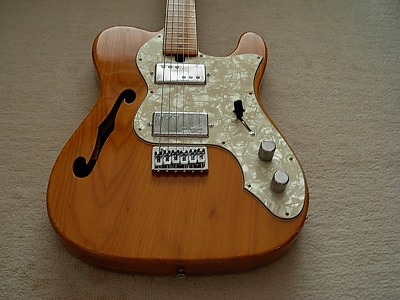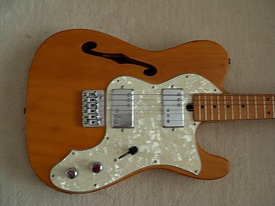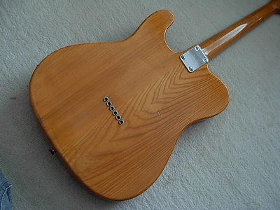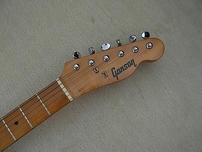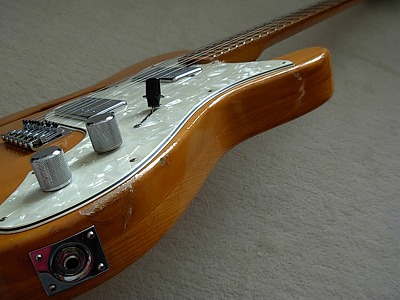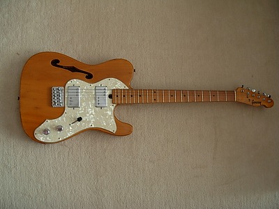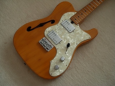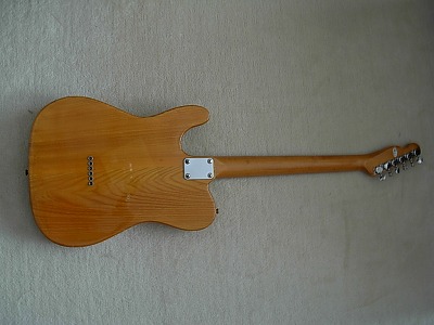 | Ganson TL-Thinline Type Ganson is also produced by Kasuga same with Gaban. Ganson brand is stated a bit earlier tahn Gaban. We could see the Les Paul and Strat model sometimes, but Telecaster Thinline type is really rare item. The condition of this guitar is good. Of course, it is over 30 years old guitar. There are many dent sand scratches. However, these are not really serious damages. The neck is 2P (head Area is 2P) + Maple finger board. The neck, frets and electric circuits are fine. The pick up size are Gibson size not Fender Humbuckers. It is easy to change the PUs for other gibson size PU. The nut is not like Fender style. It is almost like Gibson style nut. Well, it is not really good Replica, but pretty good deep tone. This is very rare guitar even not really good replica. If you are looking for the good, rare JV guitar, this is one of them. |