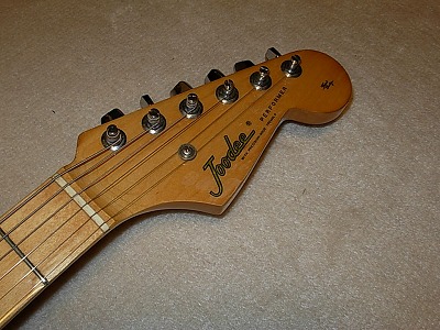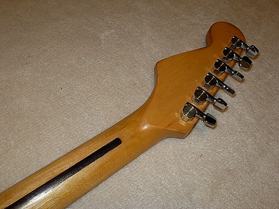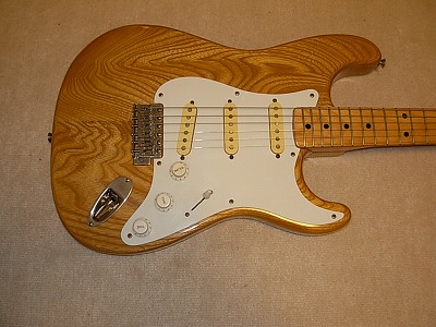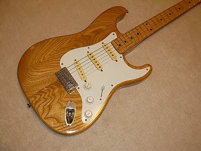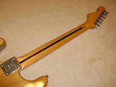 | Joodee Stratocaster 57 Model Well, Joodee is started as Dyna Gakki manufacturing. But the distributor of Joodee has a strong relation ship with Yamaki. This guitar is good proof of the relationship. It should be made in 1979-. The logo mark is different from early date Joodee. This guitar has Yamaki name below Joodee Logo. I have Yamaki Stratocaster. This guitar is completely same woth Yamaki except Joodee Brand. As electric guitar, Yamaki made strat is very good. They have bankrupted, so we could not purchase Yamaki except the second hand now. But if you have a chance, I would recommmend you to have Yamaki, if you like JV guitars. The condition of this guitar is generally fine. When I get this guitar, the paint of neck behind was peel off. So, I re-paint by Nitro Clear. Now, it is pretty smooth. I could not remeber cleary, but I didn't change any electric parts (maybe Jack, if it is switch craft on). It is very clear tone, now. The neck, frets are fine. I think very good collection item. Good era's great guitar ! |