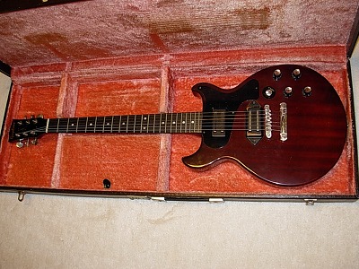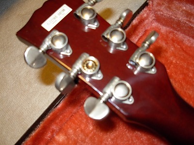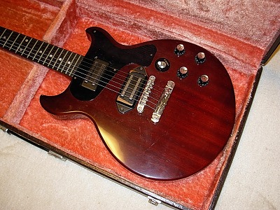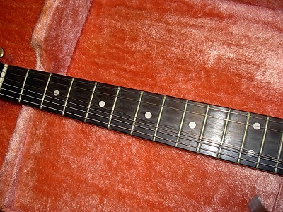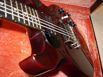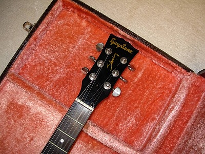 | Guyatone LG-750 This is a guitar of JV legend again. Guyatone made 2 units of TV model proto type. One guitar was for Rory, another one gone for Mr. Shigeru Narumo. Maybe you knew, Mr. Narumo was famous adviser for Greco/Fender Japan for a long time. He did also for Guyatone Amp. Guyatone sent the proto type TV for testing purpose. Anyhow, these 2 guitars were a bit different from this commercial guitar. Their TV had a stop tailpiece. This guitar has the bridge and tailpiece. Maybe, Guyatone was thinking about the intonation. The PUs are same as proto type. I'm not sure this is single or humbucker yet. The tone like LG-880 pretty much. So, probably, same construction PU??? Well, I would check it when I have enough time to have look. The neck, frets and electric circuits are proper condition. Good guitar! But, it is very heavy. If you like Rory, this is one of items, you should have it! |