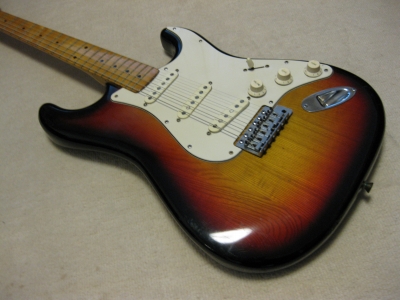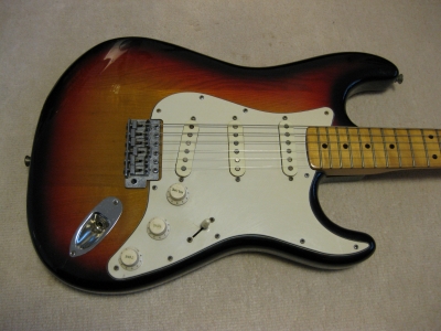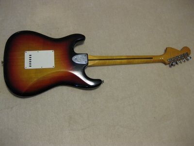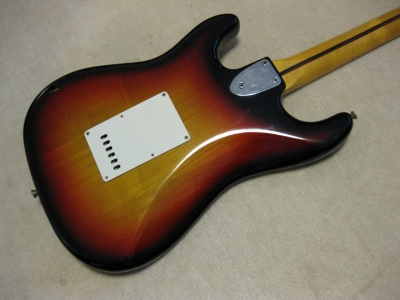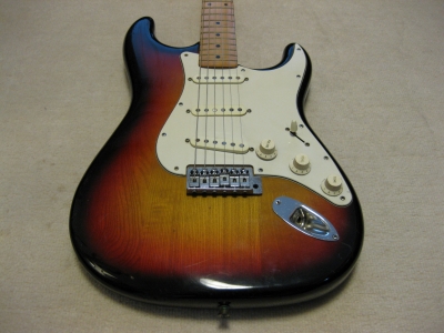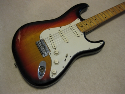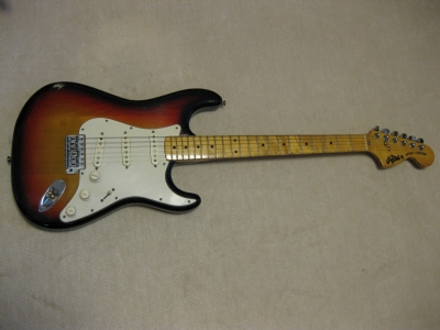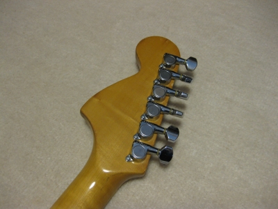 | Joodee 70's made Stratocaster model Very good condition Joodee Strat. Not so many people knew this brand. Jodee is one of my favorite brand. It is very good construction and quality. This maybe made by Dyna Gakki which is currently producing the Fender Japan. Yamaki made Joodee had a different logo mark and truss rond adjusting function. (Later, Joodee brand will be finished and change all to Yamaki brand) The neck is straight. Truss Rod is fine. The frets are proper condition. The electric components are fine too. I have changed the tuning Keyto Gotoh Rotomatic type. The body material is probably Sen (Japanese Ash), hasn't got serious dents and scratches. The neck is maple 1P. If you are considering to collect Japanese Vintage guitars, this guitar should be very good collection. Please try Japanese Vintage guitar! |