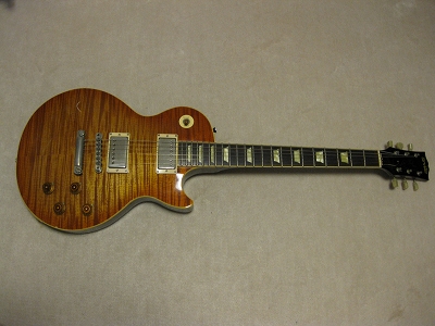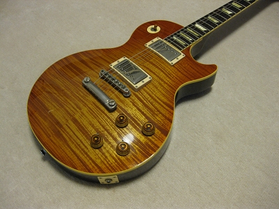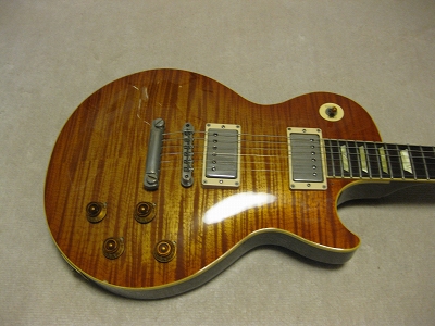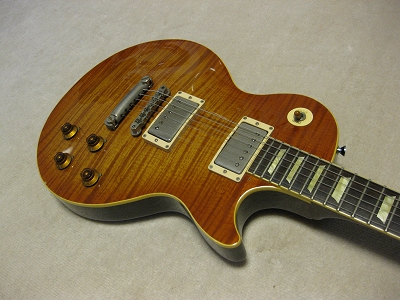 | Orville Les Paul Standard model It is getting tough to find out good condition Orville by Gibson guitar. Like G serial and numeric serial are getting more expensive. We could see Korean made K sticker Orville. However, MIJ Orville is completely different quality. This is MIJ Les Paul Standard is made by Fujigen in 1997. It is beautiful flame top. Please note that this is first photo flamed top from Orville. It has the deep joint set neck constructions. The neck is straight, Truss-Rod is workable, Frets are fine (bit worn) and electric circuit is fine too. I have only changed the PU mount rings, because of cracked. The body weight is 3.85Kg, as Les Paul, it should be right weight. Pretty good tone. You can Play like Gary Moore! I'm thinking to modify this guitar to be Jimmy Page circuit with New Gibson pick ups, If nobody purchase this guitar. The hard case is not included. Please try Japanese Vintage guitar! |